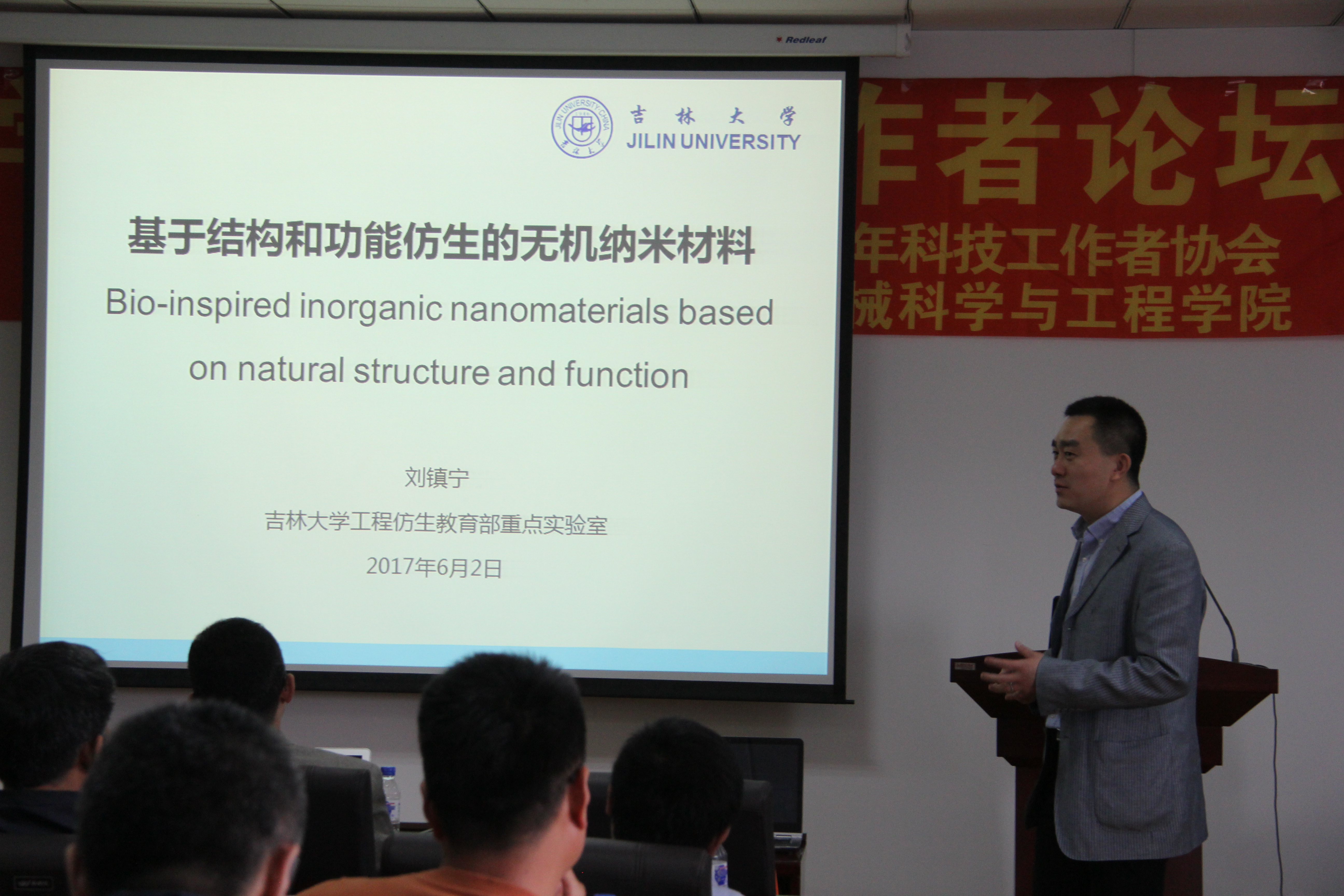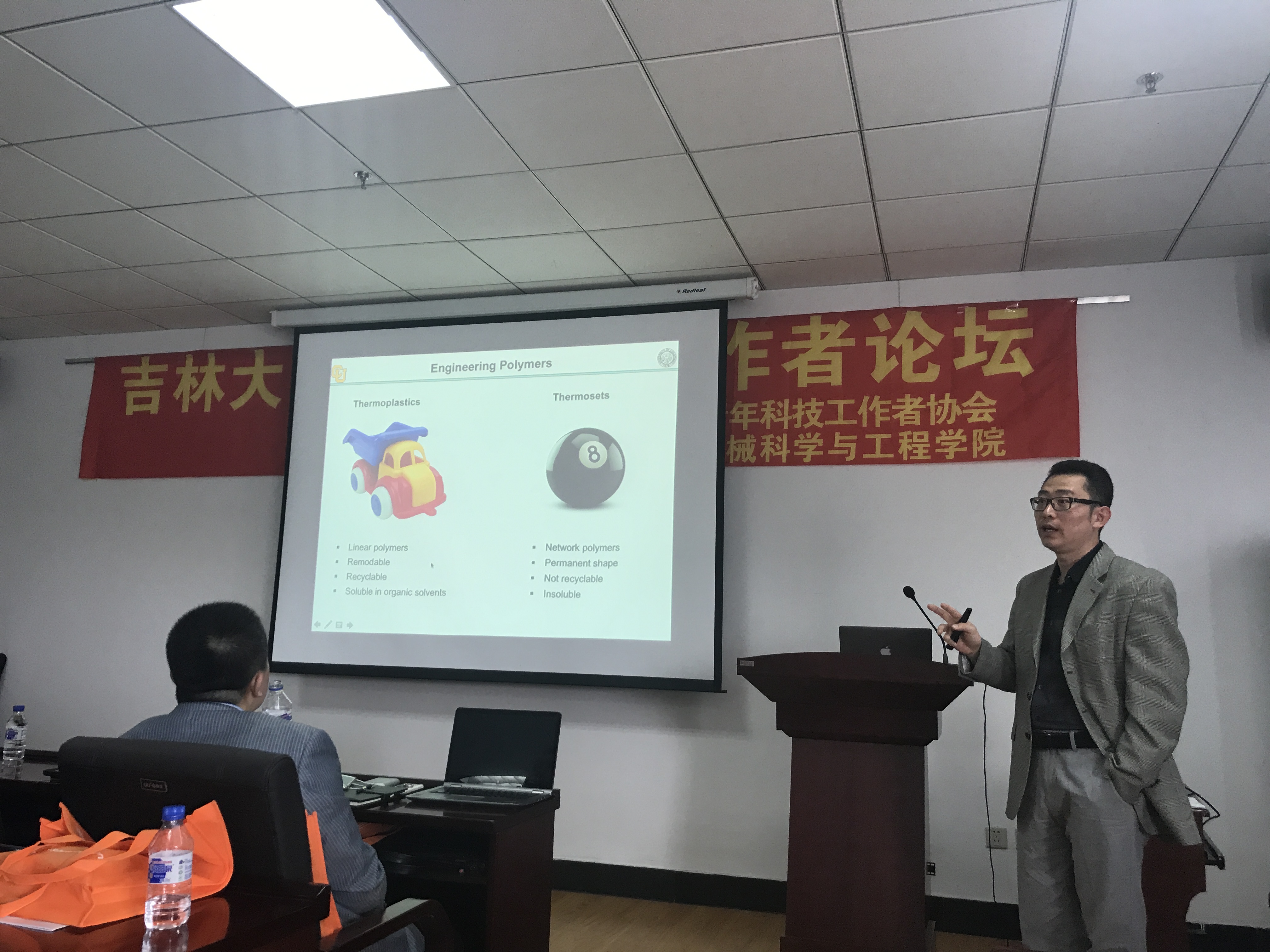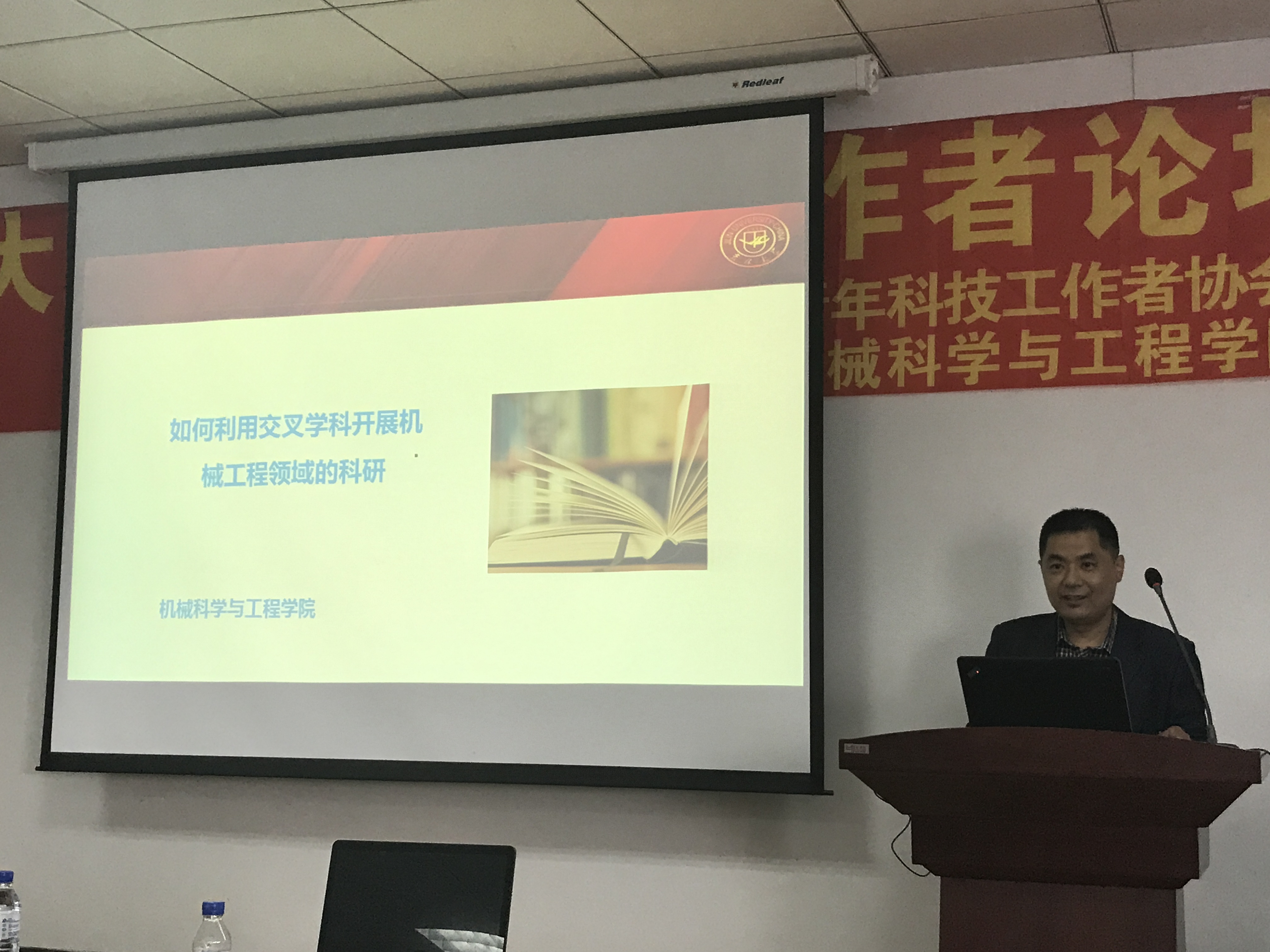 论坛邀请了汽车工程公司副经理闵海涛教授、工程仿生国家地方联合工程实验室常务副主任刘振宁教授、美国科罗拉多大学(Boulder分校)张伟教授和机械公司副经理王继新教授分别作了“面向汽车专业人才培养和学科发展的产学研协同创新实践与思考”、“三维多孔复合电极材料的可控构筑及其能量存储”、“基于结构和功能仿生的无机纳米材料”、“Repairable and Recyclable Functional Composites Enabled by Novel Dynamic Covalent Polymers”和“如何利用交叉学科开展机械工程领域的科研”等五个学术报告。