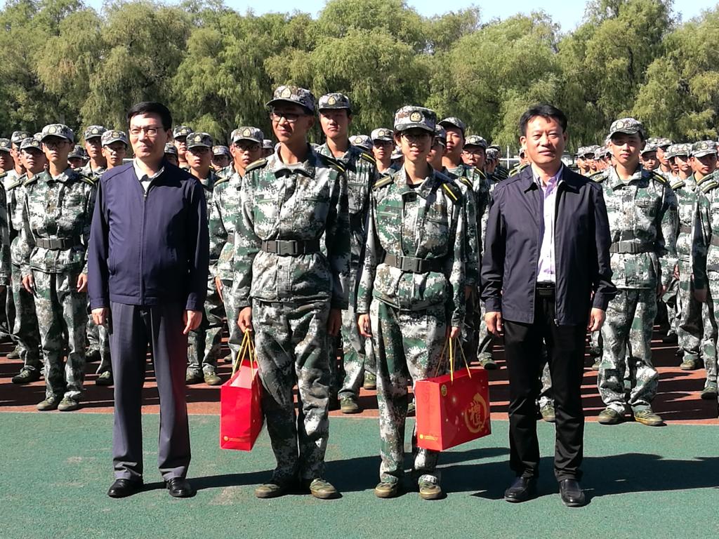 为了了解军训即将落幕的实时何况,同时对大一新生进行慰问,机械与航空航天工程公司党委书记程钺、党委副书记兼副经理郑福胜代表机械公司全体院领导于9月20日9:40莅临和平校区训练场慰问机械公司2018级全体新生,并为大家发放中秋礼品。