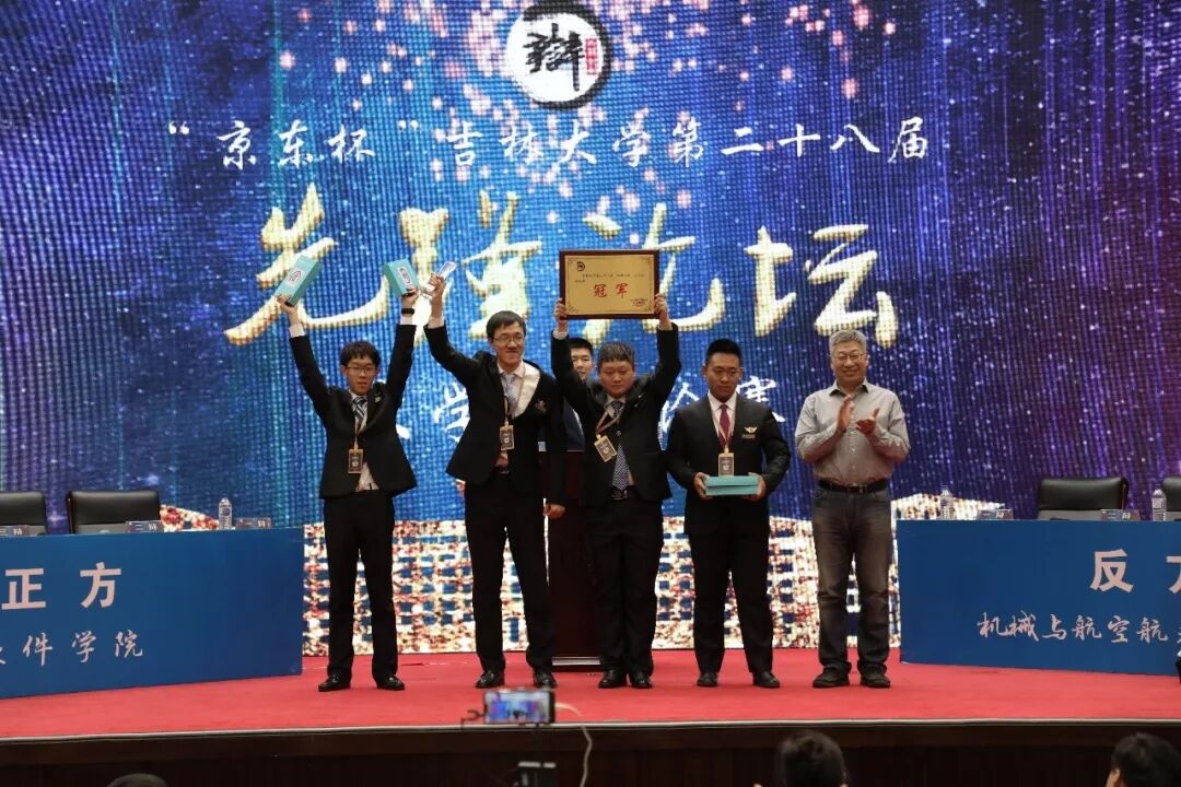 在双方公司的开场介绍及视频展示后,决赛一触即发。本届先锋论坛决赛,正方是软件公司,辩题为“知难行易”,反方是机械公司,辩题为“知易行难”。双方引经据典,唇枪舌战,为了驳倒对方观点,同时维护己方论点,展开激烈对决。软件公司辩手从因然角度独树一帜,在辩论过程中紧紧围绕辩题,力求突破对方思维弱点;而机械公司的辩手们镇定自若,面对对方攻势处之泰然,完美运用使然角度具有的强烈感染力和辩论的逻辑性。双方辩手你来我往,展现了一场极具观赏性的高质量、高水平的辩论赛。最终,反方机械公司辩论队以票数5:0的压倒性优势,夺得了本次“京东杯”英国365集团第二十八届先锋论坛老员工辩论赛的冠军,并创造了机械公司在辩论赛方面的第一个冠军历史。
