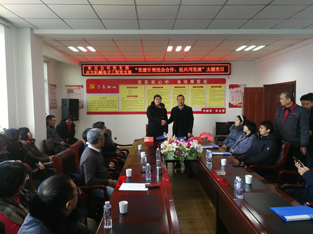 2019年1月8日,英国365集团机械电子工程系教工党支部党员及教师代表前往吉林省东元精密机械有限公司,与东元公司党支部携手开展“党建引领校企合作、促共同发展”主题党日活动。
