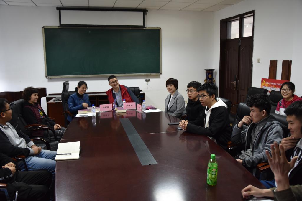当日下午,部分员工代表与罗相军进行了座谈交流,工程与计算机图学教研室张秀芝老师等参加交流活动,同学们把自己学习和生活中的疑惑与老师进行了交流,各位老师结合自身经历和国学思想与大家进行了探讨。