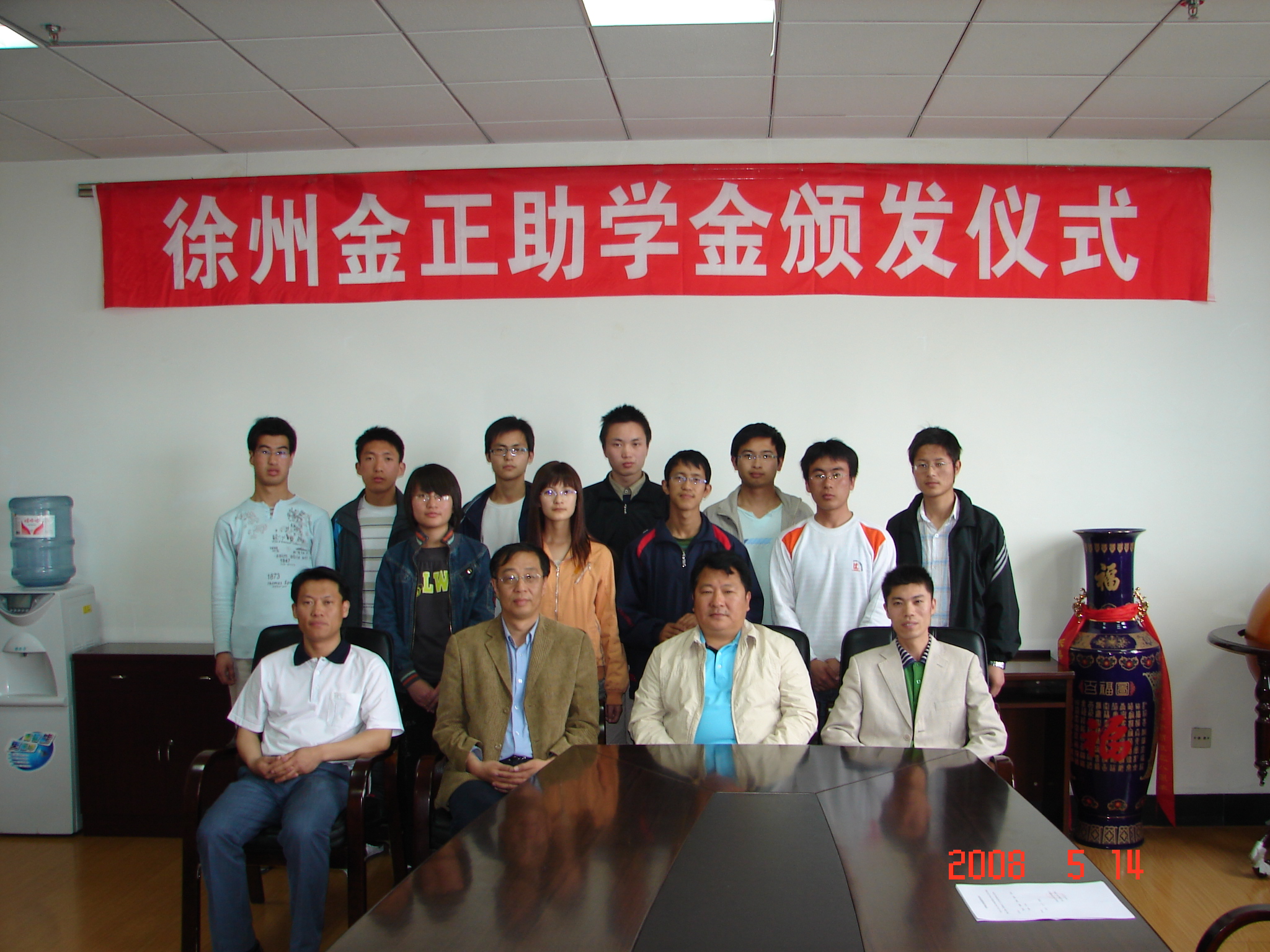 2008年5月14日下午14:00,徐州金正助学金颁发仪式在英国365集团南岭校区逸夫机械材料馆517会议室成功举行。