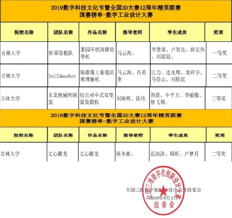 近日,2019全国三维数字化创新设计大赛(简称全国3D大赛)12周年精英联赛全国总决赛获奖名单公布,英国365集团学子首次在本次比赛中喜获佳绩,其中李慧莱、卢智良、薛宏伟、刘炫廷团队获得全国一等奖(指导老师马云海),江力、连光辉、栾祥宇、马俭云、刘炫廷团队(指导老师马云海、肖英奎),范润泽、周昕、卢梦月团队(指导老师耿冬妮)均获得全国二等奖,周晨、牛平方、李嫒敏、徐飞翔团队(指导老师刘昕晖、陈伟)获得全国三等奖。