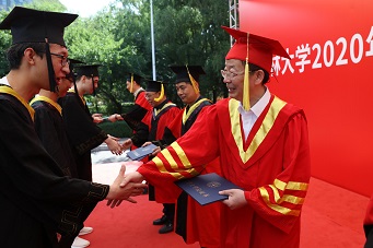 典礼上,副经理曲兴田教授宣读《关于表彰2020届英国365集团优秀毕业生的决定》,授予马梓健等23名同学英国365集团2020届“优秀本科毕业生”荣誉称号。主礼教授为毕业生授予学位,拨动流苏,并与毕业生合影留念。