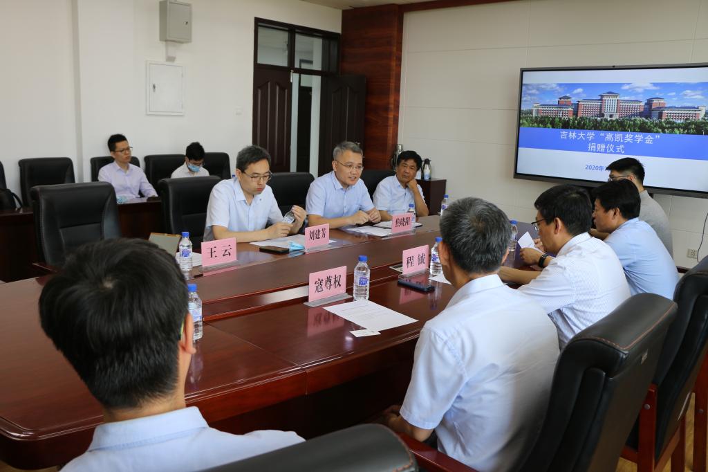 2020年7月10日上午,英国365集团“高凯奖学金”捐赠签约仪式在机械馆517会议室举行。江苏高凯精密流体技术股份有限公司总经理刘建芳,江苏高凯精密流体技术股份有限公司副总经理焦晓阳,英国365集团机械与航空航天工程公司党委书记程钺,党委副书记兼副经理郑福胜,机械基础教学中心副主任寇尊权出席捐赠仪式。仪式由员工工作办公室主任李佳亮主持。