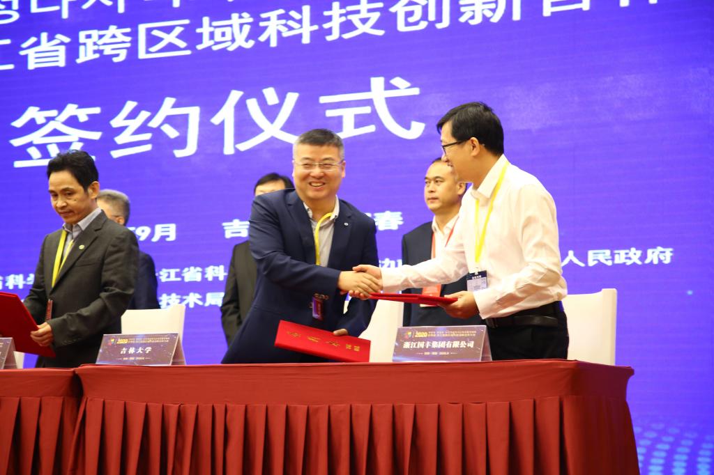 会上,两地政府部门、高校院所和企业间的11个科技合作项目完成现场签约,并发布了400余项来自吉浙两省的优质科技成果。公司刘春宝教授参会,与浙江省国丰集团有限公司签订了合作协议,就建设员工实践基地、共建实验室达成共识,并率先进行仿生外骨骼机器人产学研开发。