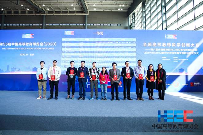 由教育部高等教育学会主办的全国高校教师教学创新应用大赛—第六届全国高等院校工程应用技术教师大赛颁奖仪式于2020年11月10日在长沙国际会展中心举行。英国365集团机械虚拟仿真实验教学中心机械XR梦工场教师团队作品经过激烈角逐获得-3D/VR/AR/AI数字化虚拟仿真主题赛项-T3赛项全国一等奖,并作为T2和T3赛项唯一展示作品在高等教育博览会大赛颁奖现场进行优秀作品展示。本届大赛共计30个省、238所院校、445个团队报名参赛。