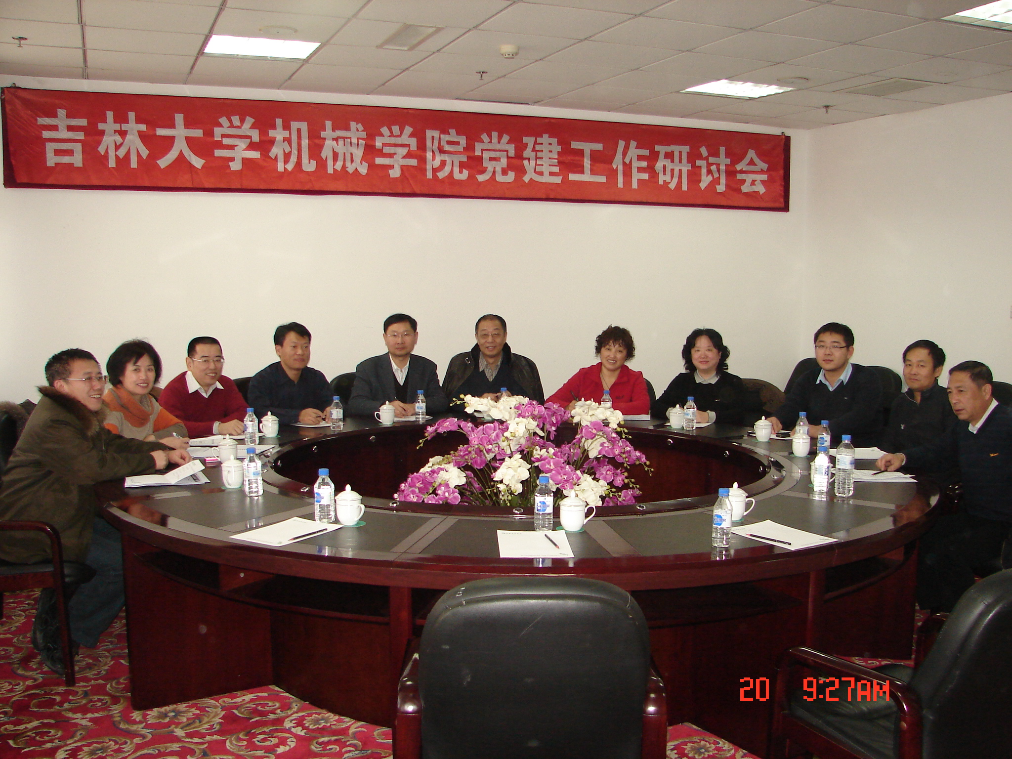 2010年11月20日上午,机械公司党委党建及思想政治工作研讨会在吉林省长春市自然村崂山厅召开,会议由公司党委书记王国强教授主持,党委副书记王柏、郑福胜及党委委员,党支部书记、团委书记、员工辅导员等参加会议。