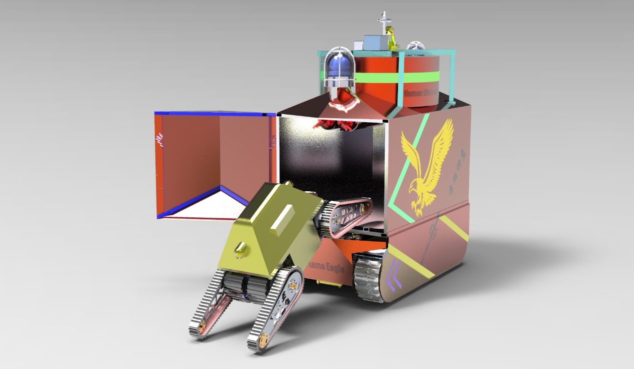 该项作品集合了超高温隔热复合夹层、5G传输、红外传感、液压传动、3D建图、路径规划、UWB融合定位等关键技术于一体,为消防机器人室内救援领域提供了新思路。在作品研制过程中,同学们灵活运用所学的蜗轮蜗杆、液压、丝杠螺母等经典机械机构,结合人工智能、无人驾驶控制算法、虚拟仿真等新兴技术,历经两年时间,开展了近百次实验,终获成功。