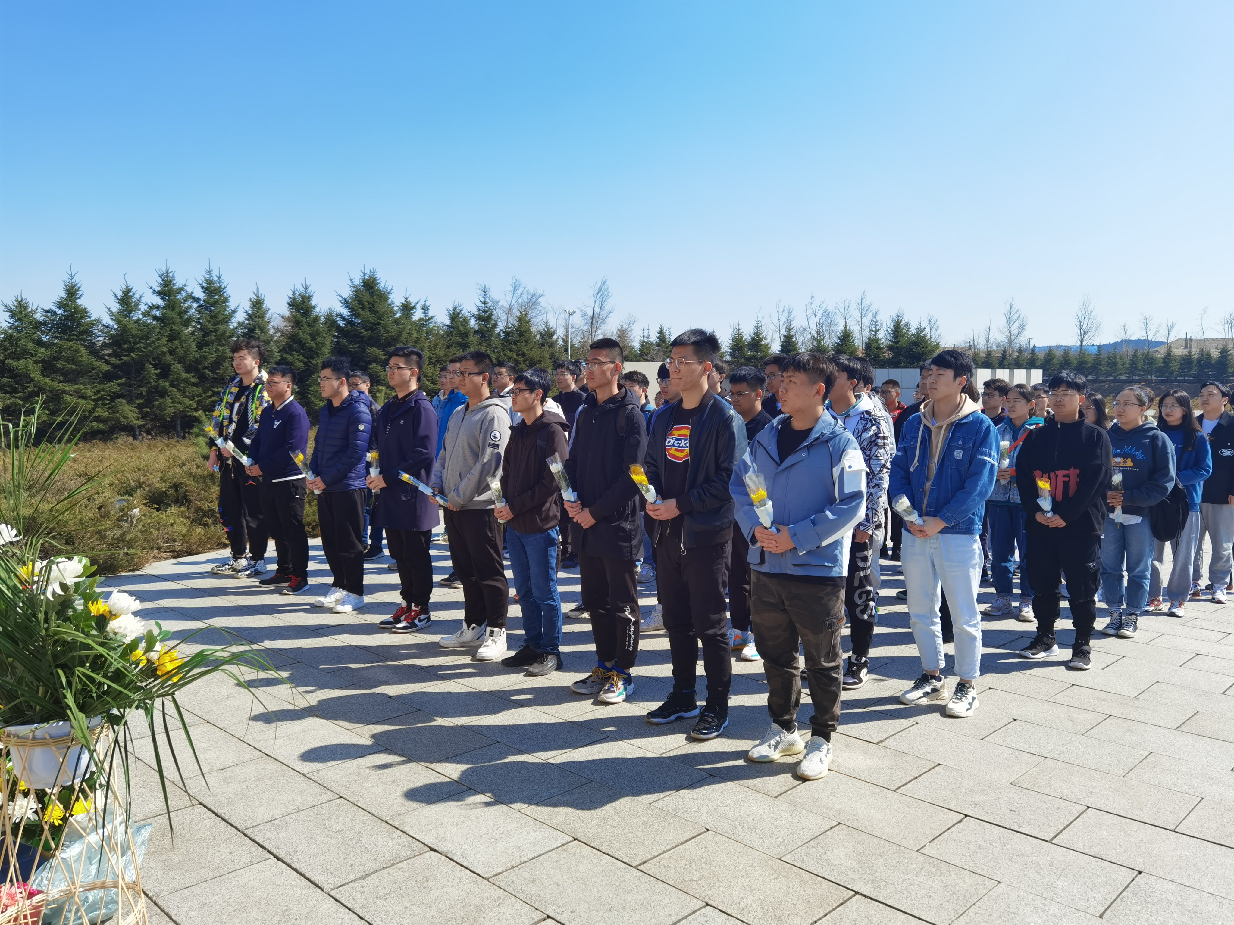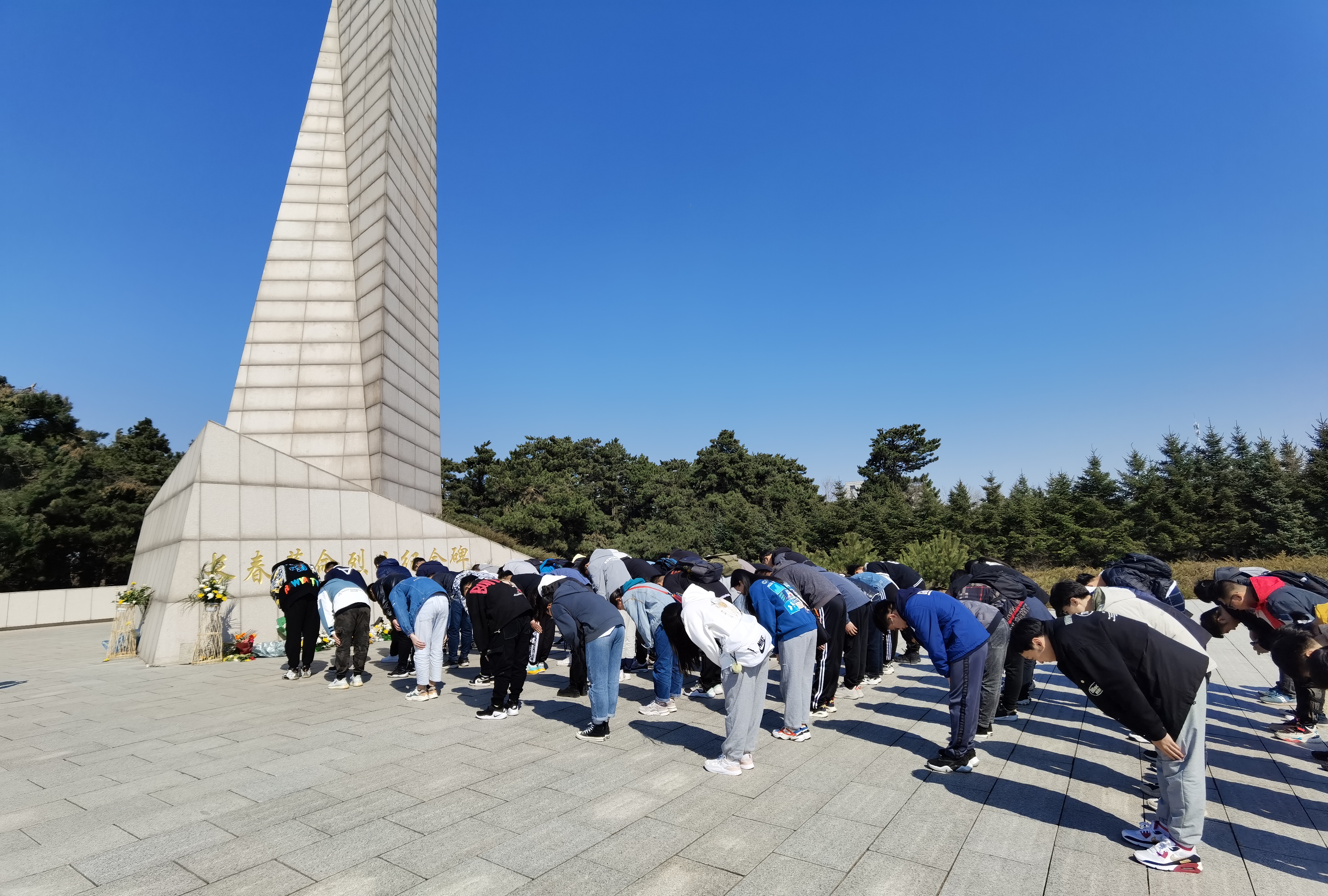 4月7日中午,机械公司本科员工四个支部的员工党员在逸夫机械材料馆集合一同坐车前往长春市革命烈士陵园。在达到烈士陵园后,同学们便都自觉来到烈士纪念碑前,庄严肃穆的看着“长春革命烈士纪念碑”几个大字,在心里诉说这对英雄的敬仰。随后,同学们站成一队,每个人的手里都拿着一束鲜花,依次向前献花,在献花之后,同学们又深深的鞠躬。他们以这样的方式表达自己对革命烈士的缅怀与致敬,鲜花在风中摇曳,好像在述说英雄的故事。之后在王超同学的带领下,80名员工党员在纪念碑下重温入党誓词,不忘初心,牢记使命。在工作人员的带领下,同学们又参观了革命烈士纪念馆,每一位同学都在认真的阅读英雄们的故事与经历,每一次驻足都是一次对英雄的敬仰。习近平总书记的话被放在了纪念馆中最重要的位置:“一个有希望的民族不能没有英雄,一个有前途的国家不能没有先锋。包括抗战英雄在内的一切民族英雄,都是中华民族的脊梁,他们的事迹和精神都是激励我们前行的强大力量。”