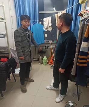 在员工寝室,辅导员老师叮嘱同学们要勤开窗、常通风,注意防火防盗及疫情常态化下的通风消毒,按时打扫卫生,防止蚊虫、细菌滋生,对于违章电器等危险物品要坚决抵制,增强防范意识,切实保障自身及他人安全。经检查,未出现使用违规电器情况,大部分寝室做到了卫生状况良好、空气清新。但仍有少部分寝室存在室内通风不佳、电器断电不及时、垃圾堆放等问题,检查小组已通知员工个人及时整改。