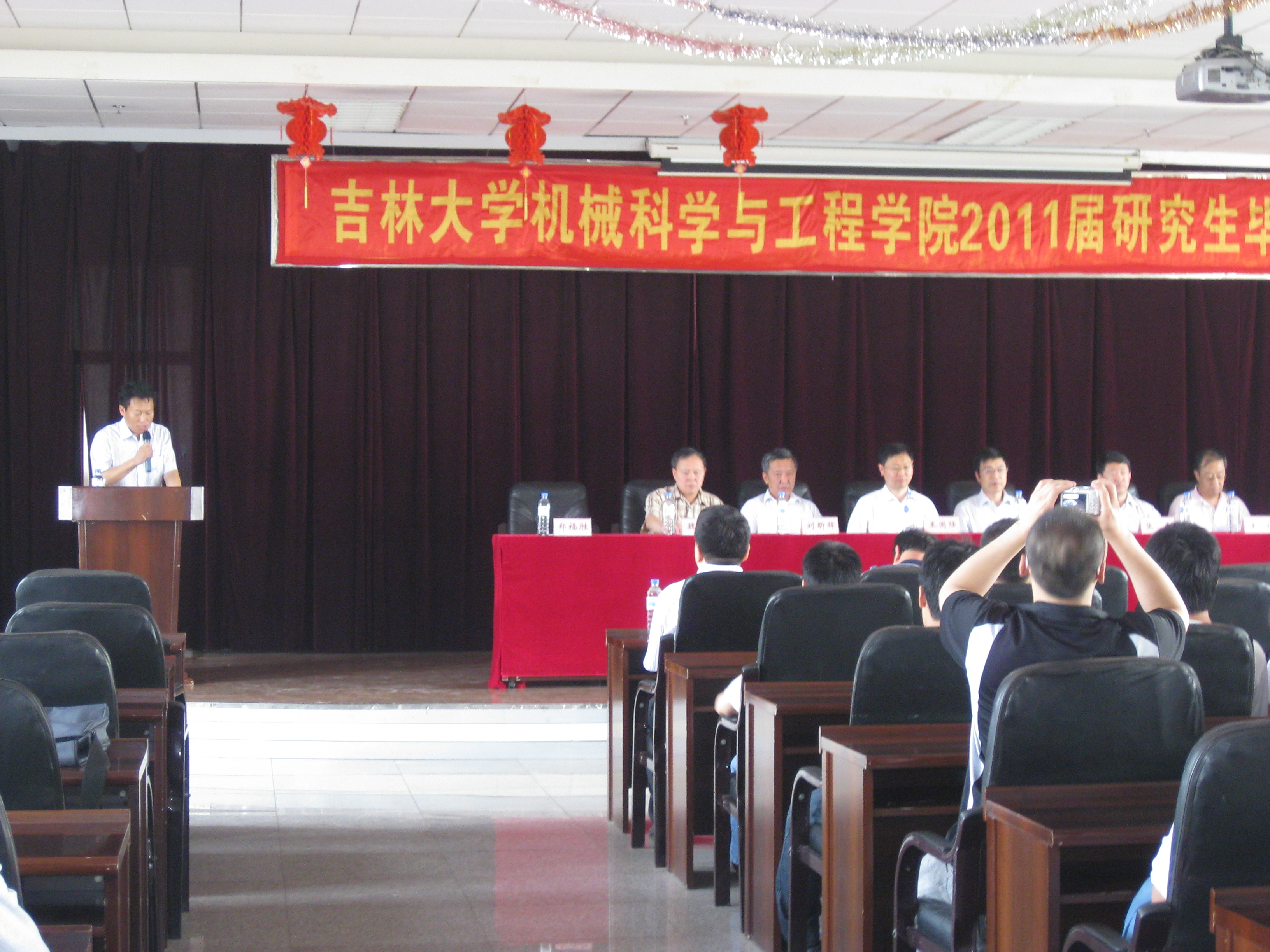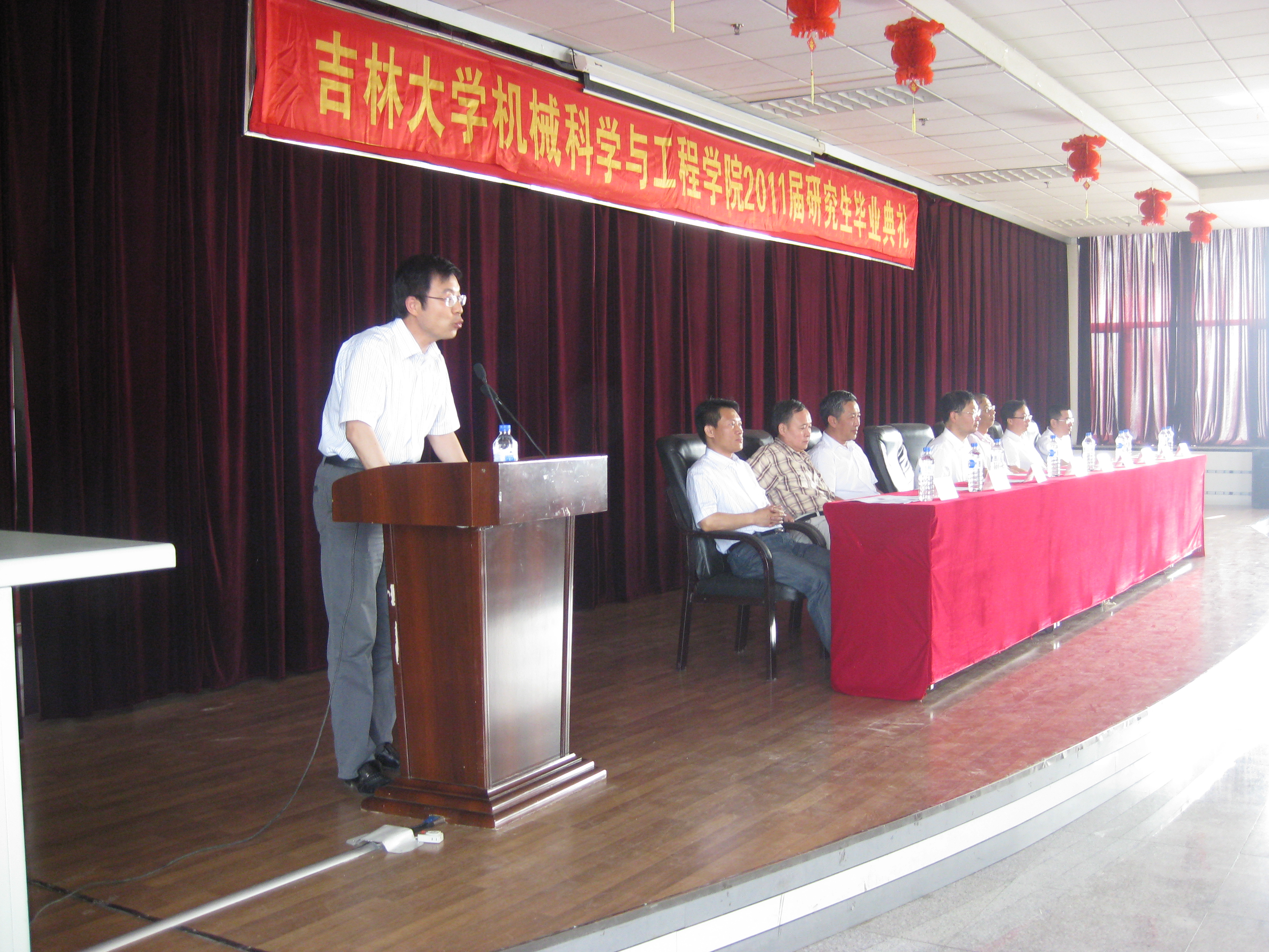 毕业典礼在庄严的国歌中开始,国歌奏毕由机械公司副经理张雷教授宣读毕业生名单,与会院领导及教师代表给优秀毕业生颁发证书,充分肯定他们在读期间的努力和付出。员工代表温超向辛勤培育他们的母校,向机械公司,向一直关心、爱护研究生的院领导及老师们表示衷心的感谢,表示在今后的工作中加倍努力为母校争光;随后成凯教授回顾了研究生在校科研生活并对毕业生们在未来的发展寄予最衷心的祝福。最后经理杨兆军教授讲话,他首先向顺利完成学业并获得博士学位、硕士学位的2011届研究生同学表示衷心的祝贺,同时向全体毕业研究生提出了几点希望,希望他们抓住时代机遇,珍惜广阔舞台,把工作岗位当成自己事业发展的起点,把母校的求真务实文化与拼搏精神带到工作岗位上去,不断锤炼自己,为国家和社会作出贡献,实现自身价值。