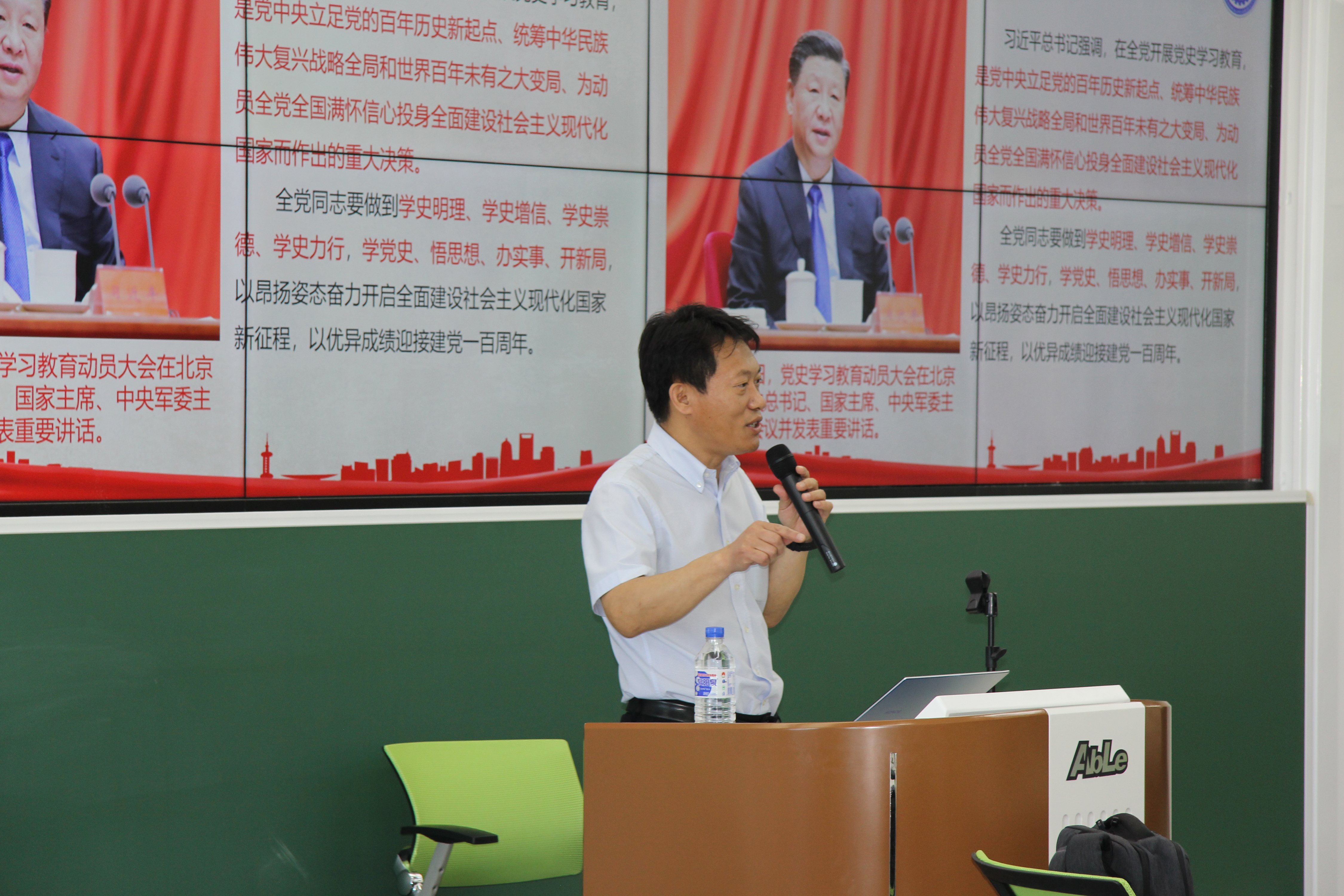 郑福胜以具体案例为切入点,深入解读了党史学习教育的目的与意义、新时代我国两步走的战略安排、中国共产党人的精神谱系等内容,带领大家回顾了共产党人艰苦奋斗、勤俭立业的光荣历史,提醒同学们时刻铭记和珍惜当前幸福生活的来之不易。围绕“学史明理、学史增信、学史崇德、学史力行”四个目标,号召毕业生们一要感悟思想伟力,了解党的历史、理论、思想,找到正确的前进方向;二要增强历史自信,筑牢信仰之基,将爱党爱国情感化为追求卓越的动力;三要赓续奋斗精神,传承红色基因,涵养高尚道德品质;四要勇于担当作为,把学习成效转化为工作动力和发展成效,切实担负起新时代青年人的责任和使命。