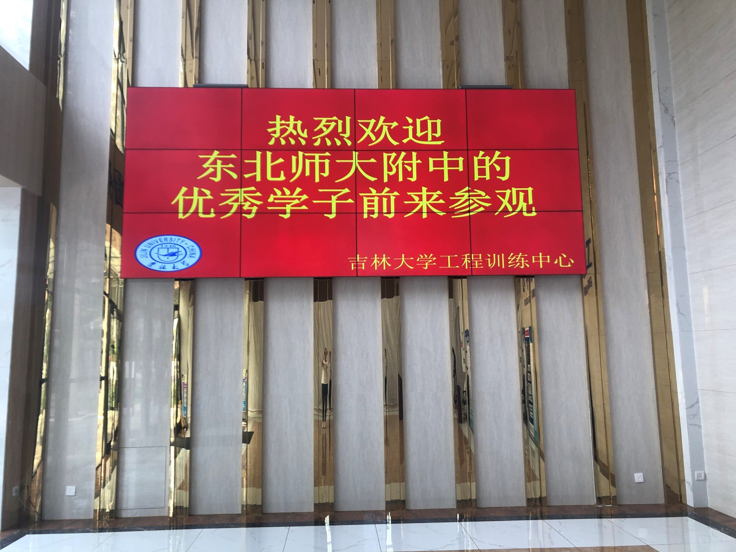 下午一点,52名东北师范大学员工身穿蓝色校服,由员工干部统一带队,在工程训练中心门前合影留念,随后进入工程训练中心大楼参观。