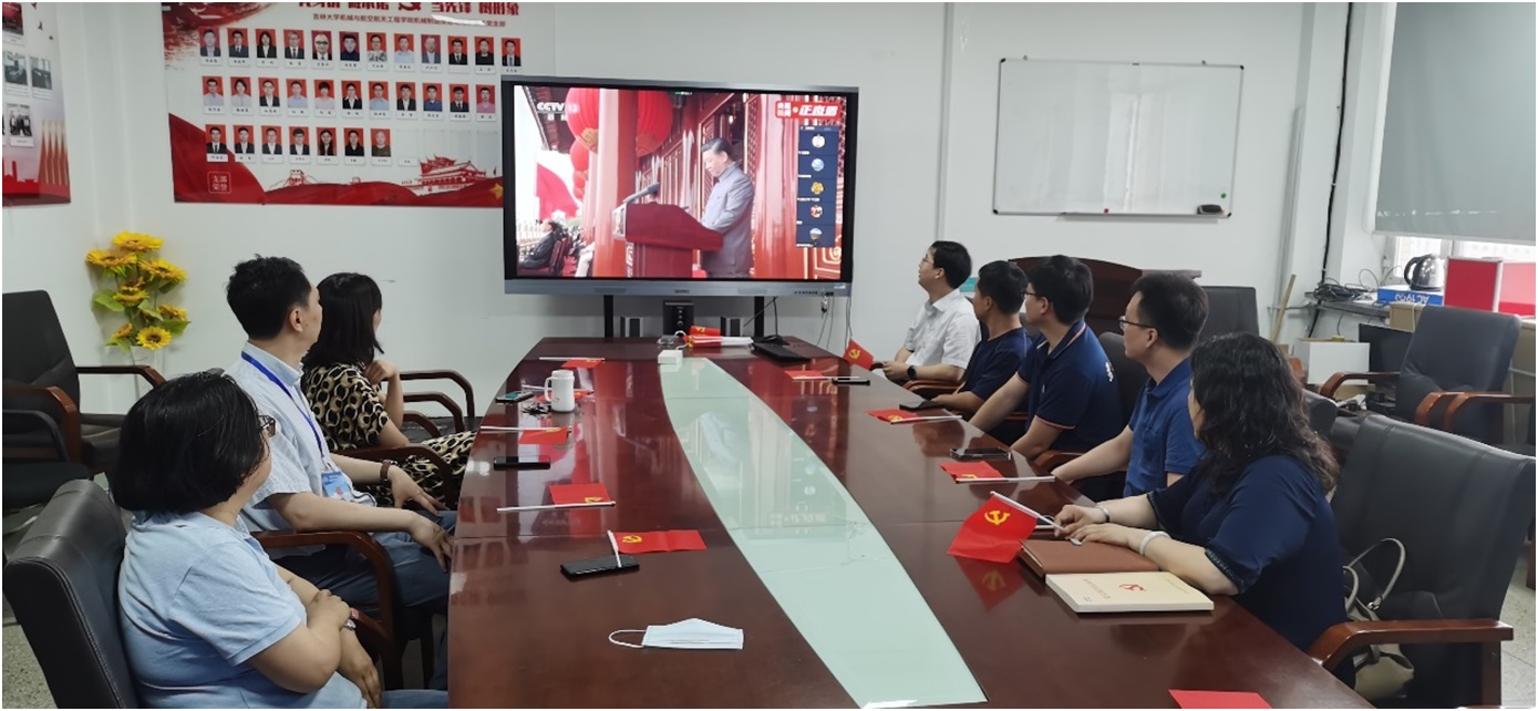 7月1日上午8时整,庆祝中国共产党成立100周年大会在北京天安门广场隆重举行,机械制造及自动化系教工党支部通过线下线上相结合的形式,组织党员观看建党百年庆典盛况,聆听习近平总书记重要讲话,共同感受振奋人心的时刻。