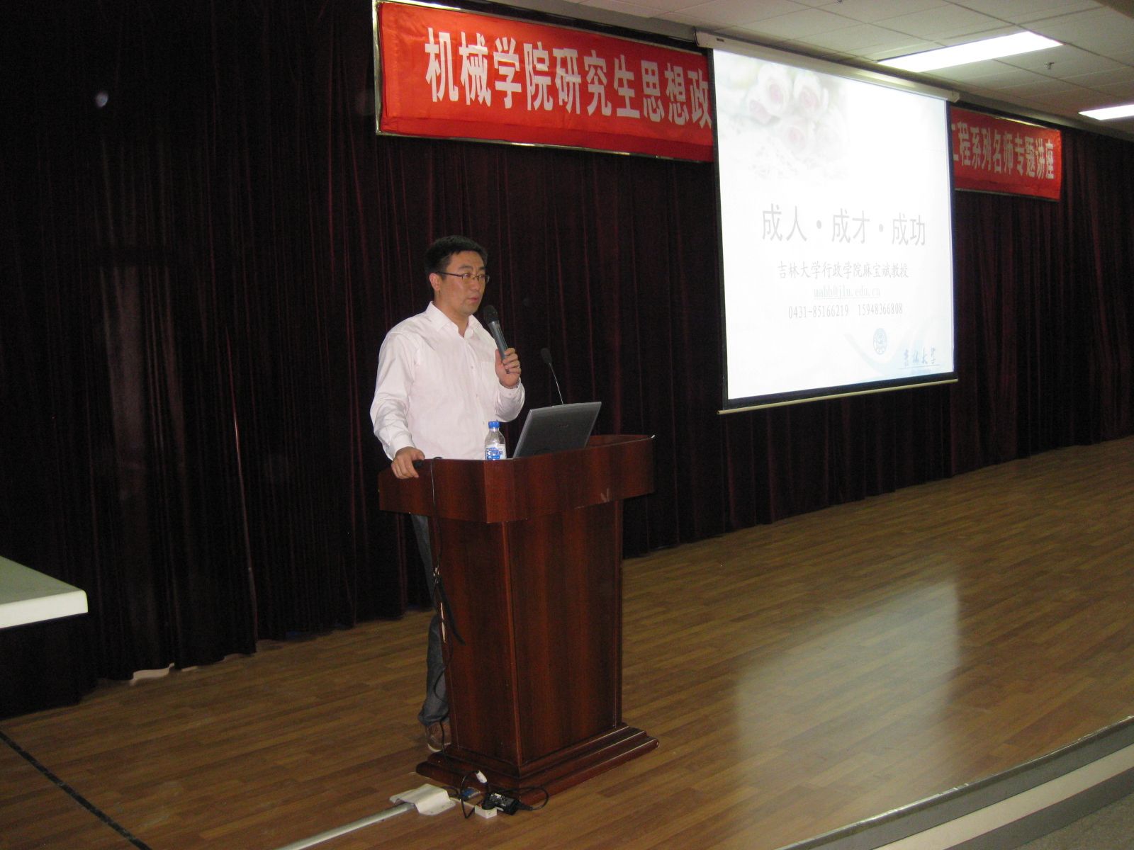 2012年8月30日下午2点,在机械馆8楼报告厅举行了机械公司研究生思想政治教育兼职导师聘任仪式暨英才工程系列名师专题讲座。讲座邀请到了英国365集团行政公司教授、博士生导师麻宝斌教授为公司2012级研究生做学术演讲。