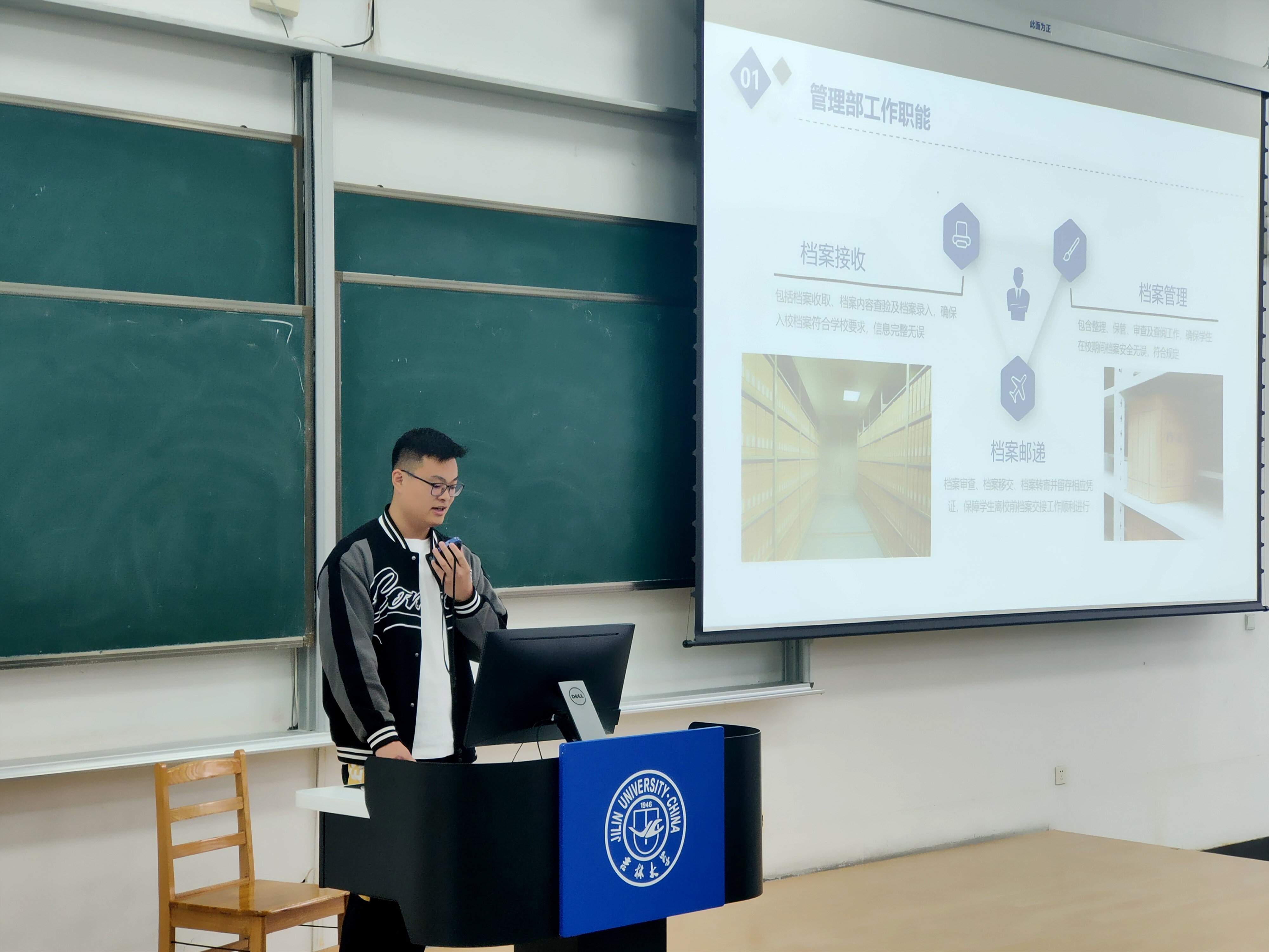 曲艺老师重点强调了疫情防控注意事项,要求新生同学们严格执行报到14天内的封闭管理,严格遵守封闭管理后公司的请假销假制度,同时还明确了请假销假手续流程,要求同学们做到“非必要不出校,非必要不离长”,保持良好的卫生习惯,勤洗手常通风,将安全防疫牢记心间。曲艺还就宿舍安全、人身安全、食品安全、财产安全及网络安全问题做出提醒,提醒同学们警钟长鸣,严防自己身陷险境。针对宗教信仰问题,曲艺叮嘱同学们要正确理解宗教信仰,合法合规参加宗教活动,区分好封建迷信活动与宗教活动,防范、警惕、遏制极端宗教主义思想的渗透和传播。最后曲艺老师介绍了各类奖学金的评审情况,鼓励同学们努力钻研,积极进取,并欢迎同学们来到研办,就生活上、学习上、情感上遇到的大事小情多与老师们沟通交流,希望公司能作为坚强后盾陪伴同学们度过一段愉快的青春旅程。