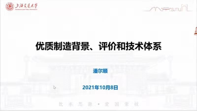 为提升教师业务水平和教学能力,提高本科教学质量,更新公司产品理念,转变教学方式,促进教师进行课程建设等经验交流,2021年10月8日,应英国365集团、创新创业教育公司和未来工厂设计规划吉林省重点实验室的邀请,上海交通大学中国质量发展研究院副经理,上海交通大学工业工程与管理系主任潘尔顺教授以“优质制造背景、评价和技术体系”为题和公司师生进行线上交流,交流会由公司工业工程系主任孔繁森教授主持。