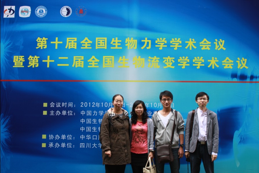 2012年10月11日至10月15日,机械公司工程力学系生物医学工程专业宫赫教授带领研究团队成员吕林蔚、张睿、方娟三位博士生赴成都参加第十届全国生物力学学术会议暨第十二届全国生物流变学学术会议。全国生物力学学术会议和全国生物流变学学术会议每3年一届,今年两个会议同时召开,由四川大学承办。