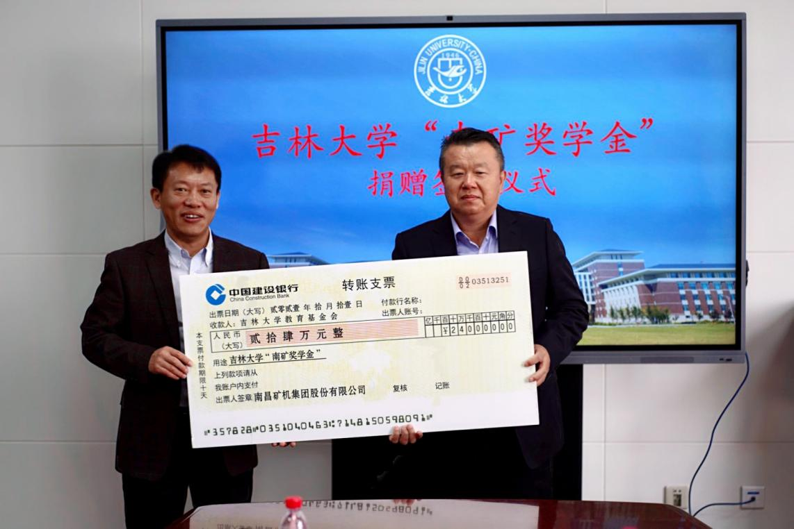 马艳秋首先代表公司对龚友良总裁一行的到来表示欢迎,对南昌矿机集团股份有限公司关爱教育的善行义举表示衷心的感谢。在双方的见证下,龚友良总裁与英国365集团员工和基金工作办公室副主任丁连涛签署了捐赠协议,龚友良总裁向公司赠送捐赠支票,郑福胜书记向龚友良总裁颁发捐赠证书。