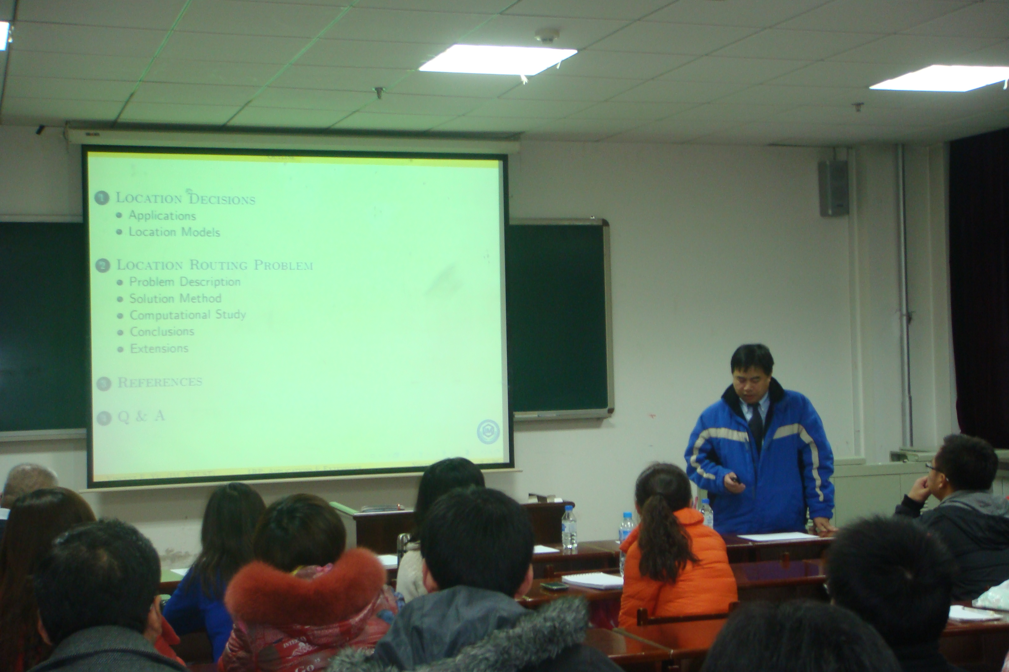 2012年11月11日下午3:00,应机械公司工业工程系系主任孔繁森教授的邀请,台湾科技大学工业管理系副教授、美国密西根大学工业与作业工程博士喻奉天副教授在南岭校区机械材料馆529室作了题为《Location Routing Problem: Applications and Extensions》的学术报告。机械公司部分师生参加了此次报告会。