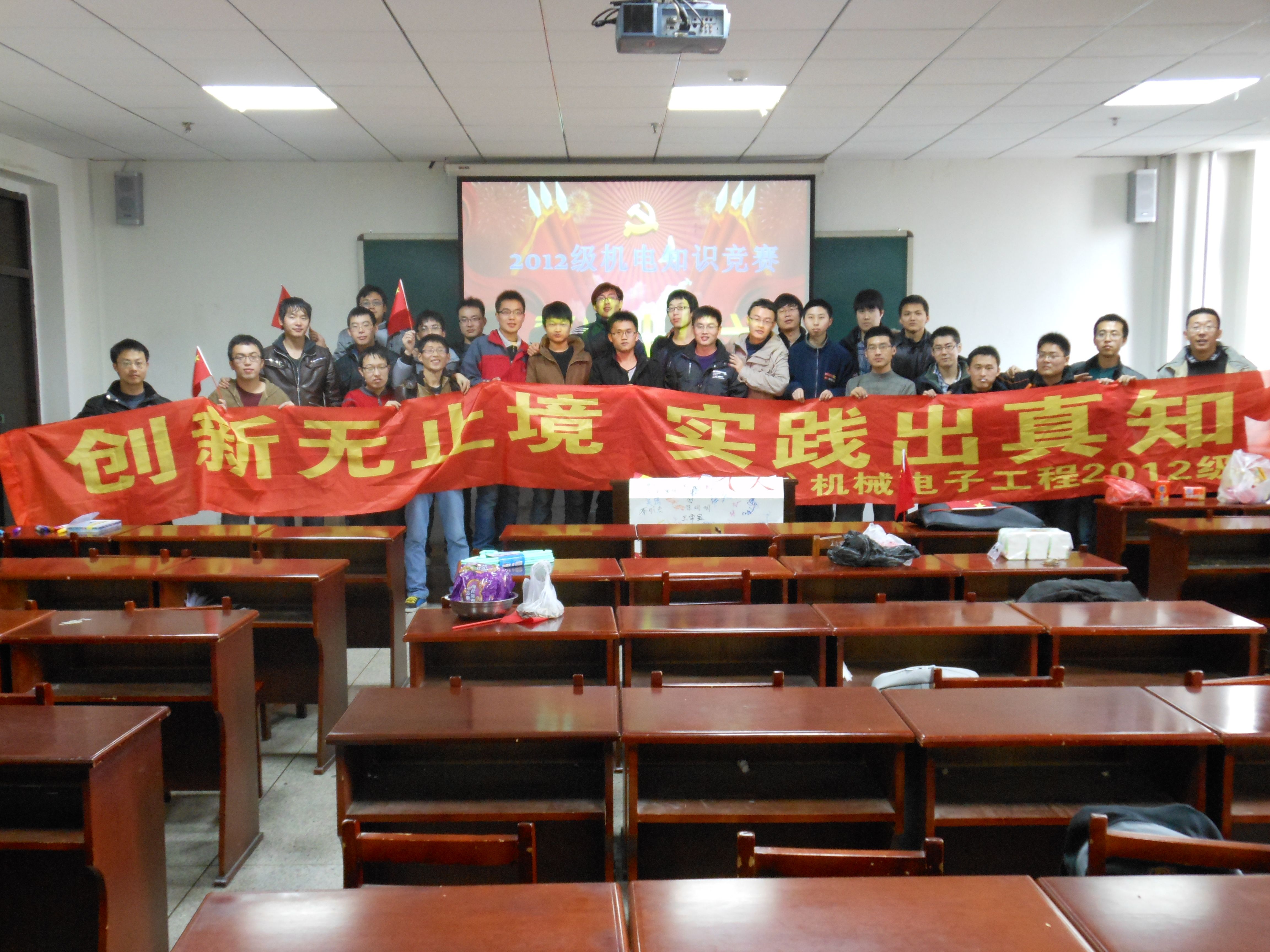 2012年11月9日是我们中华民族值得铭记的一天,党的十八大在北京隆重召开。为了喜迎党的十八大的召开,2012级机械电子班党支部举办了以“历史不容忘记求知方能前行”为主题的知识竞赛活动,此次活动在逸夫机械材料馆529室举行。活动旨在让大家加深对十八大的了解,丰富大家的关于国情、党史相关知识,增强研究生的时代责任感与使命感,使同学们在此次活动中收获了快乐,学到了知识!