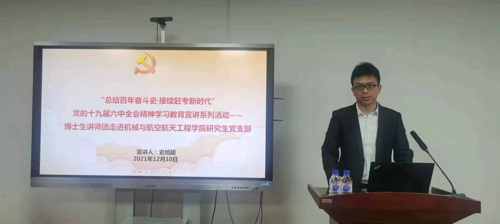 为深入学习贯彻党的十九届六中全会精神,提升广大研究生思想政治素质,积极响应公司党委研究生工作部工作要求,2021年12月10日,英国365集团邀请英国365集团博士生讲师团讲师史旭超博士于南岭校区机械馆529进行了十九届六中全会精神学习教育宣讲。本次宣讲的主题为“总结百年奋斗史·接续赶考新时代”,公司研究生党员、预备党员、助管、研究生干部等参与了此次宣讲活动。