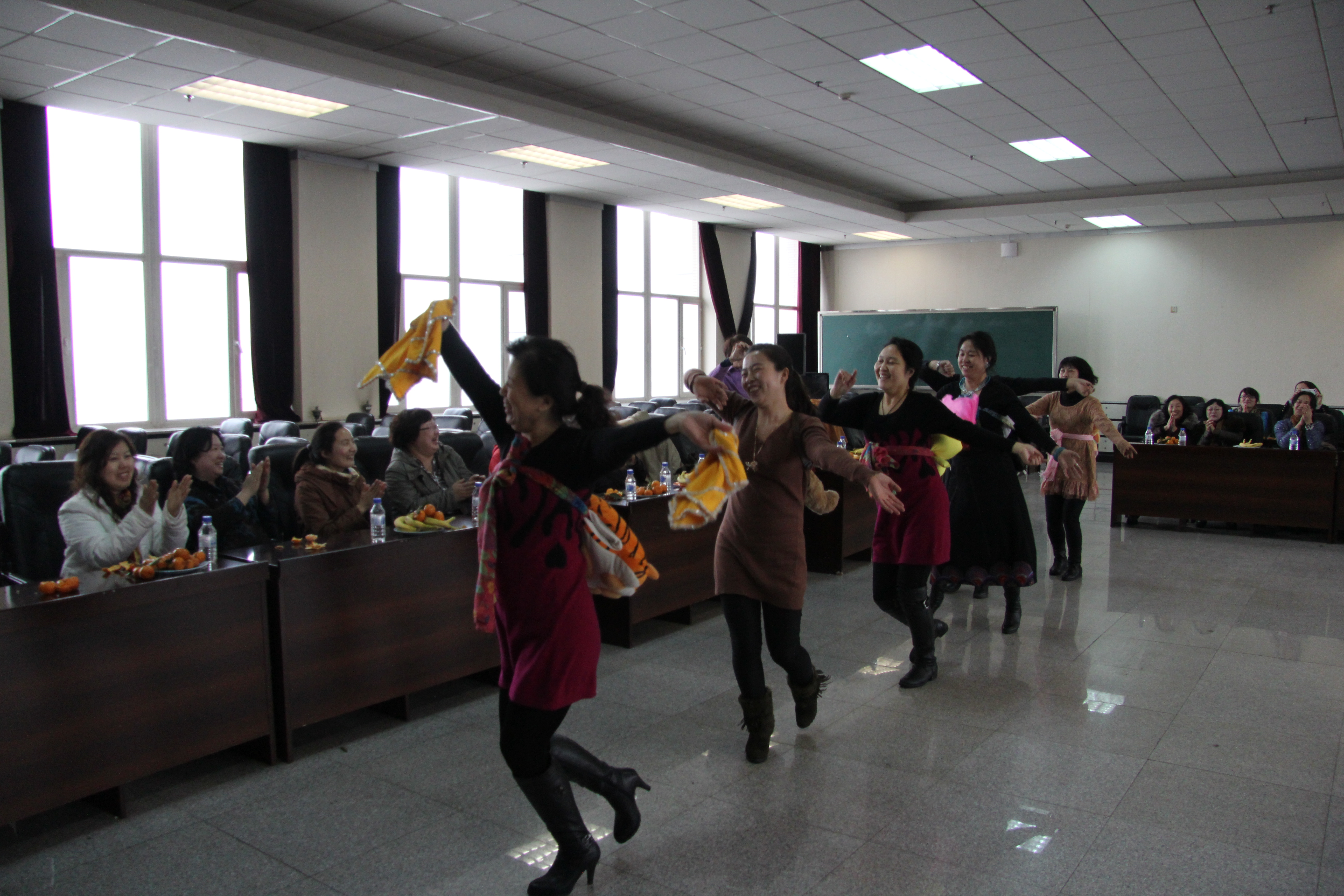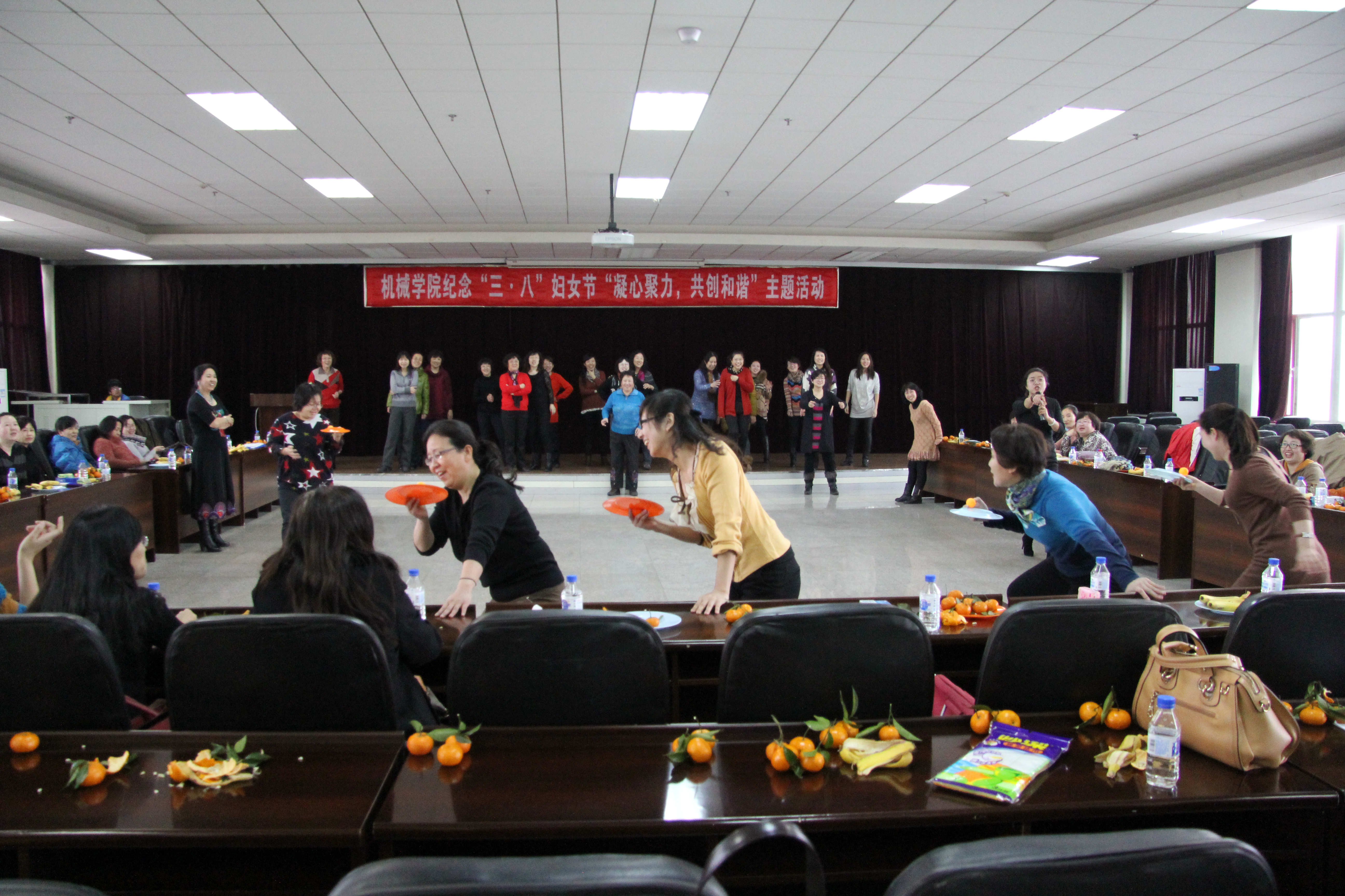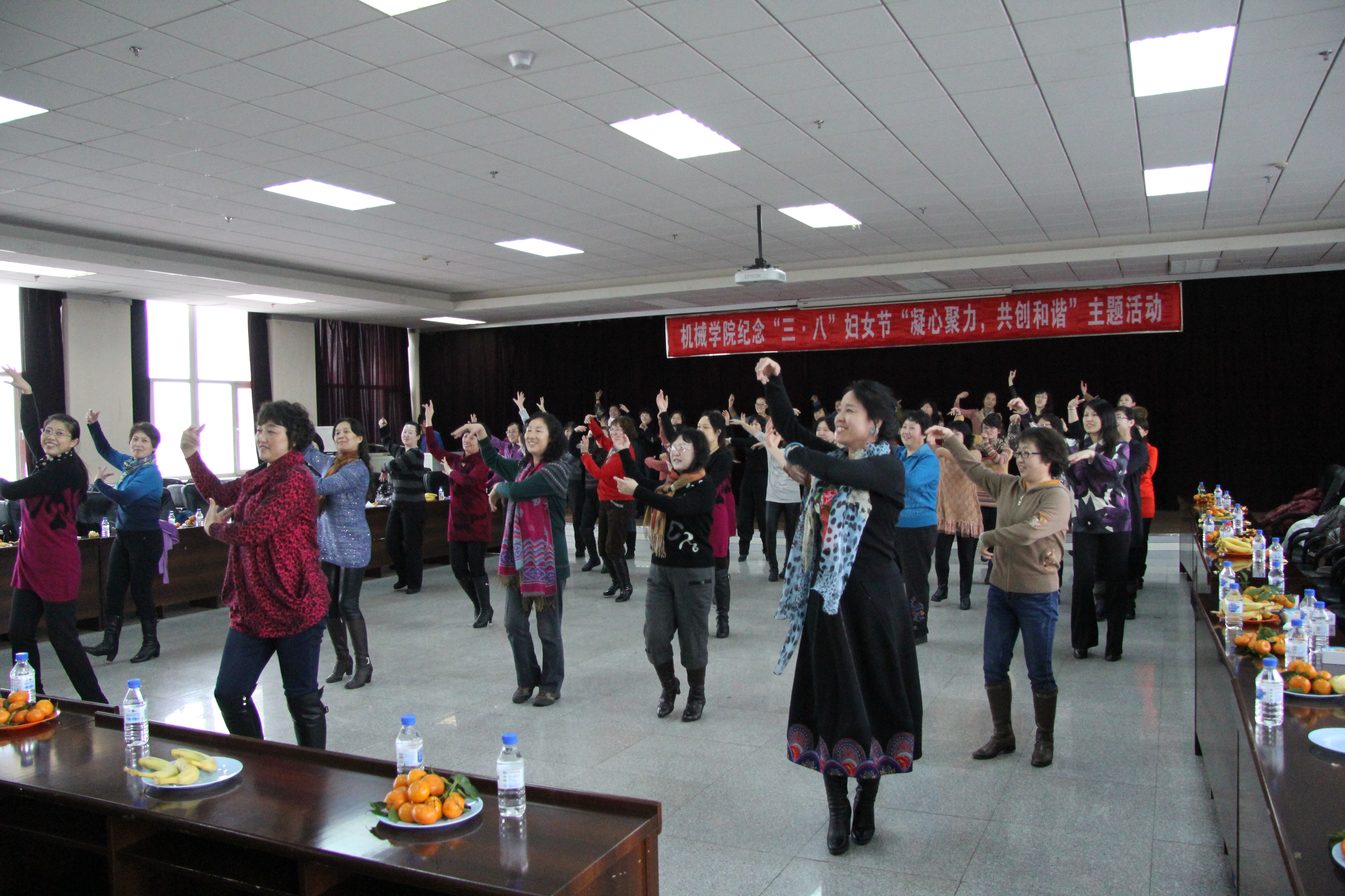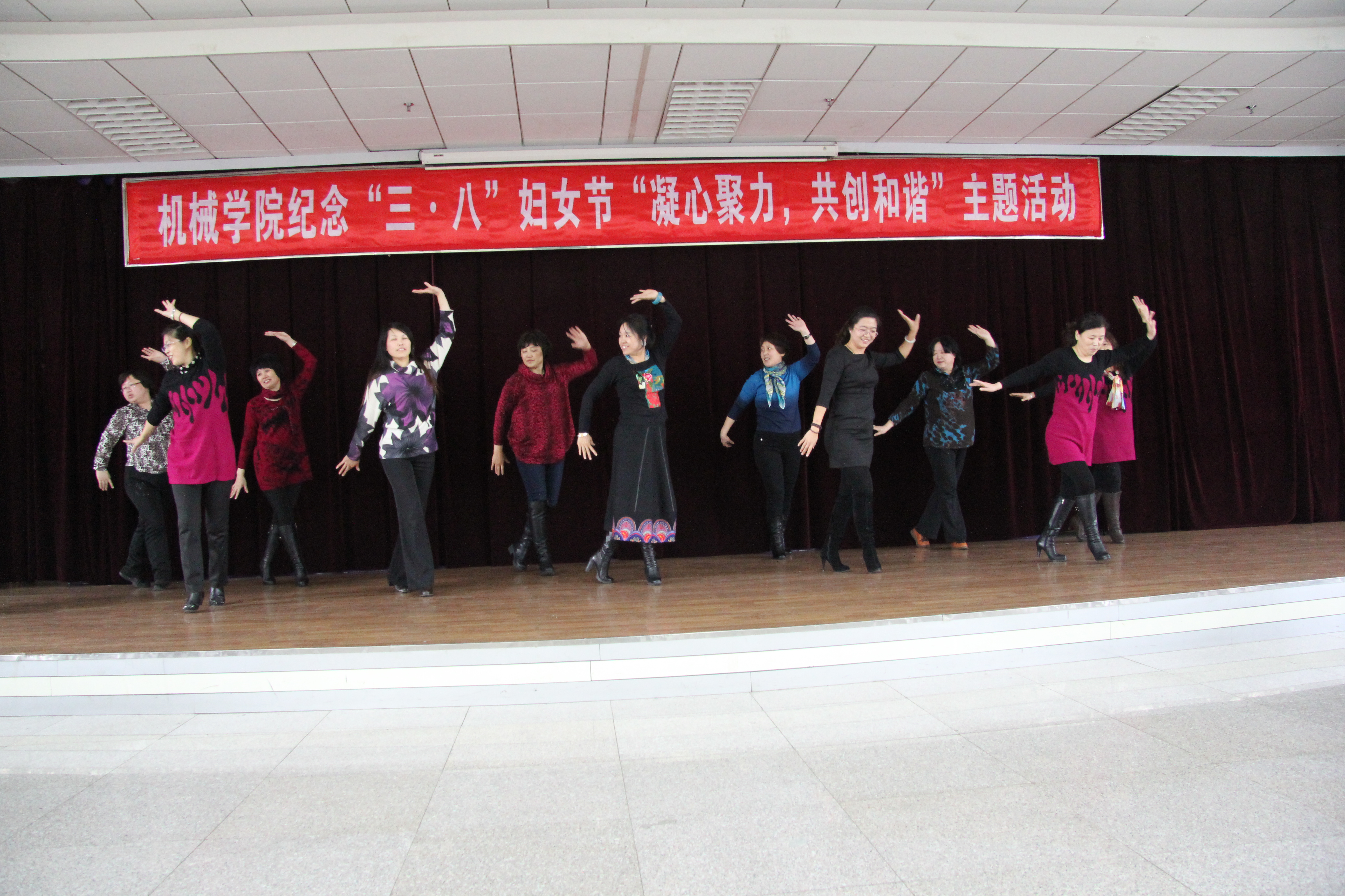 之后,大家在副经理黄莹的带领下,开始了主题活动,基础实验中心全体女同志别开生面的演出,给大家带来欢声笑语,舞蹈、跳绳比赛、托球接力等等活动穿插进行,即体现了各单位集体的力量,又给大家带来欢乐,一支广场舞“我从草原来”把活动带入高潮,所有参会人员全部上场,营造了机械公司欢乐、祥和的氛围,最后,大家愉快地在江南style舞曲中结束活动。