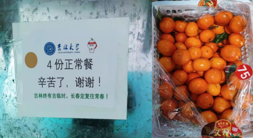 3月14日是隔离的第一天,我竟然可以负重28.8斤的饮用水一口气爬上六楼!早上6点30分早餐送达12公寓C区门口,中午12点午餐送达,13点饮用水送达,17点晚餐送达。短短一天的时间,吉大后勤的工作人员没有一丝懈怠,在长春物资极其紧缺、时间如此紧迫的情况下,仍能将一日三餐全部按时送达几万名员工手中。