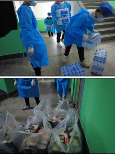 当我穿上志愿者防护服那一刻,心中燃起的是抗疫必胜的决心,是对祖国、对公司的感激,正是这股力量砥砺着我们投身志愿服务工作。分发、调度、配合,我们送去的不仅仅是一份份盒饭、一瓶瓶矿泉水,更是吉大给予我们的一份份的踏实和信心。“团结、奉献、友爱、互助”身处其中才会明白这简单的八个字带给我们的力量。“众志成城,共克时艰”也似乎让平凡的我们变得意义非凡。