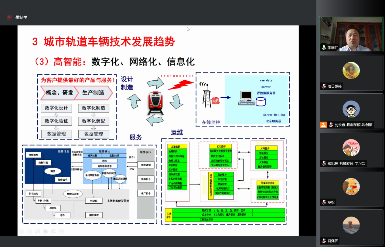 全校疫情防控的关键时期,为丰富校园封闭管理生活,满足公司研究生的科研诉求,引领同学们开展高质量学术研究,2022年3月25日下午,英国365集团举办了第三期““疫”路同行,感“械”有你”云端讲堂系列学术报告会。本次会议特邀朱国仁教授,就“城市轨道交通现状及车辆技术发展趋势”主题开展学术报告。