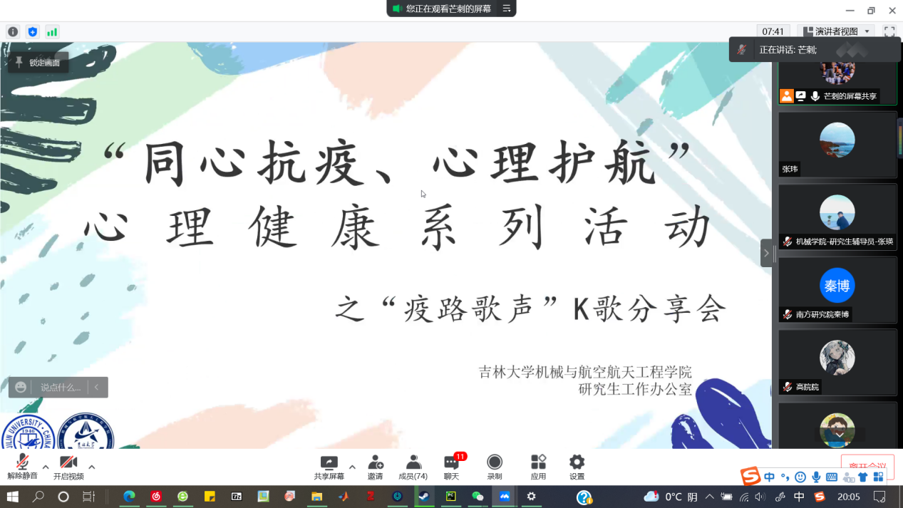 本次K歌分享会,为同学们提供了一个展示自我的精彩舞台,缓解了同学们特殊时期的紧张心理,展示了公司学子奋发向上、青春昂扬的精神面貌。公司将继续开展系列活动加强研究生的心理健康建设,用真情助力打赢疫情防控阻击战,“疫路歌声”相伴,静待春暖花开。