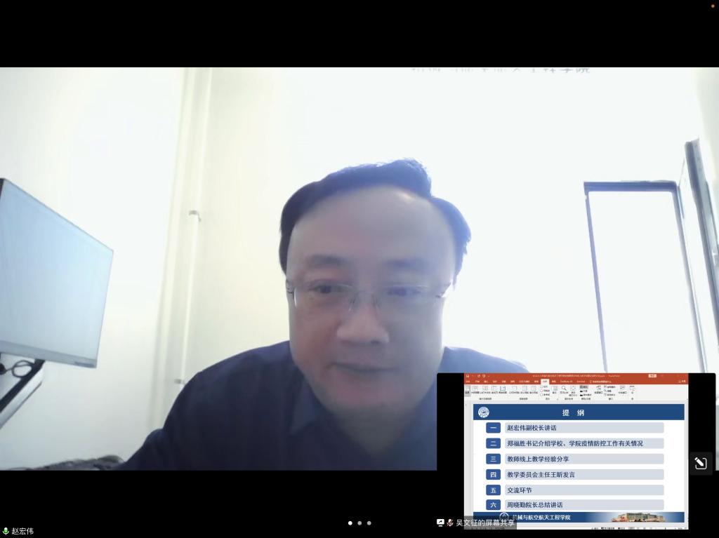 赵宏伟首先肯定了公司本科线上教学成果,并号召公司教师向榜样学习,理解员工疫情期间心理状况,鼓励员工树立远大目标。接下来,他对课程设计、毕业设计等主要教学环节提出了建议和意见。最后,他对全院师生为教学及抗疫工作做出的贡献表示感谢。