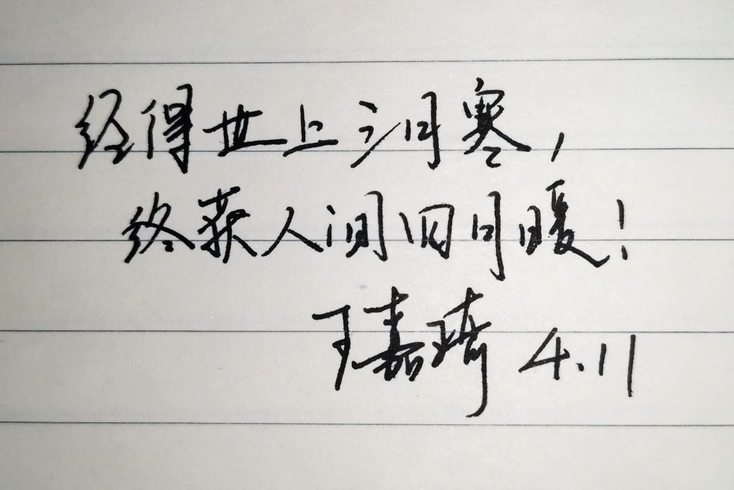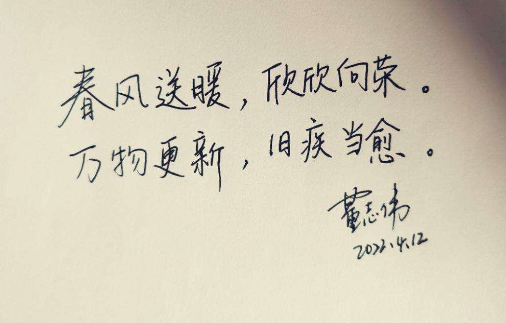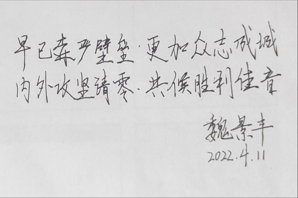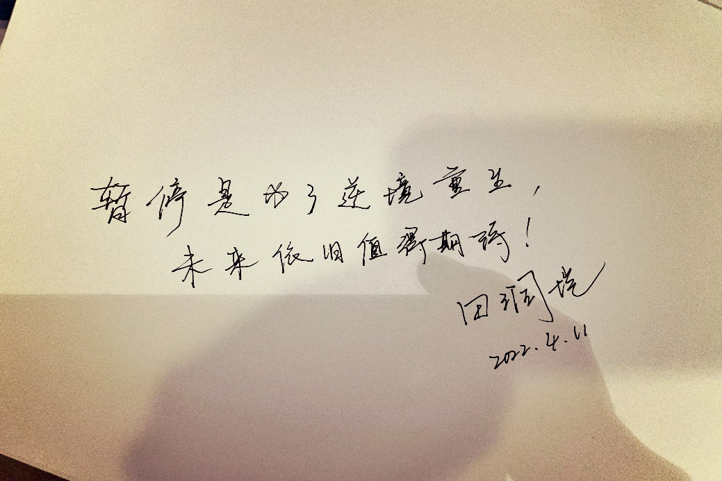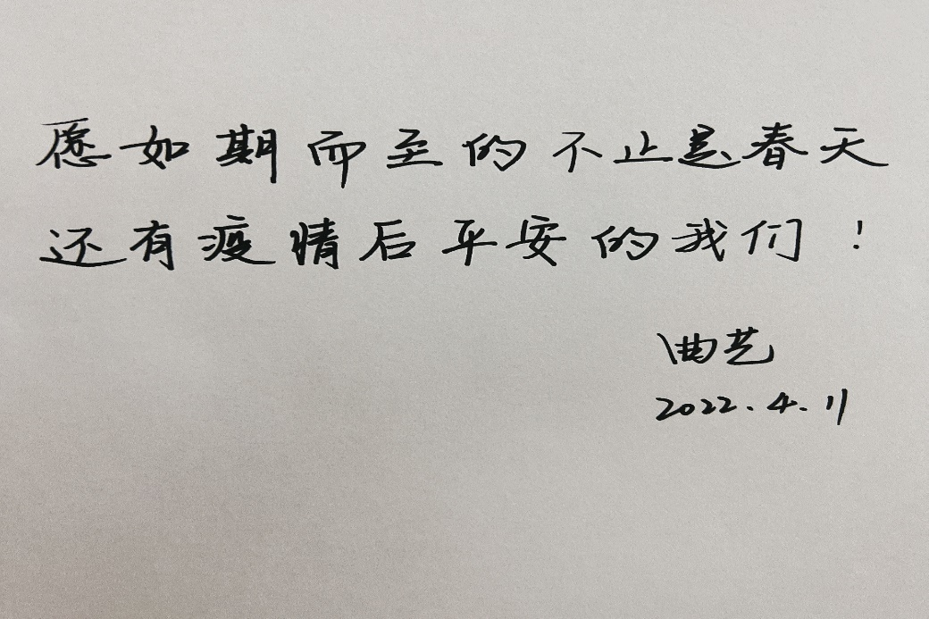 为深入贯彻落实公司对疫情防控工作要求,英国365集团组织“落笔祈愿、抗疫心语”线上寄语活动,以“抗疫寄语”表情感、强信心、寄嘱托。从4月11日至4月13日,公司老师和同学们踊跃参加、快速响应,用一幅幅生动的笔墨书写最动情的话语。在这别样的春日里,一句暖心话、一句祝福语、一段激励词,是公司师生内心由衷的感受,也是公司师生无惧疫情、充满信心的体现,更是公司师生对战胜疫情后美好未来生活的期待!