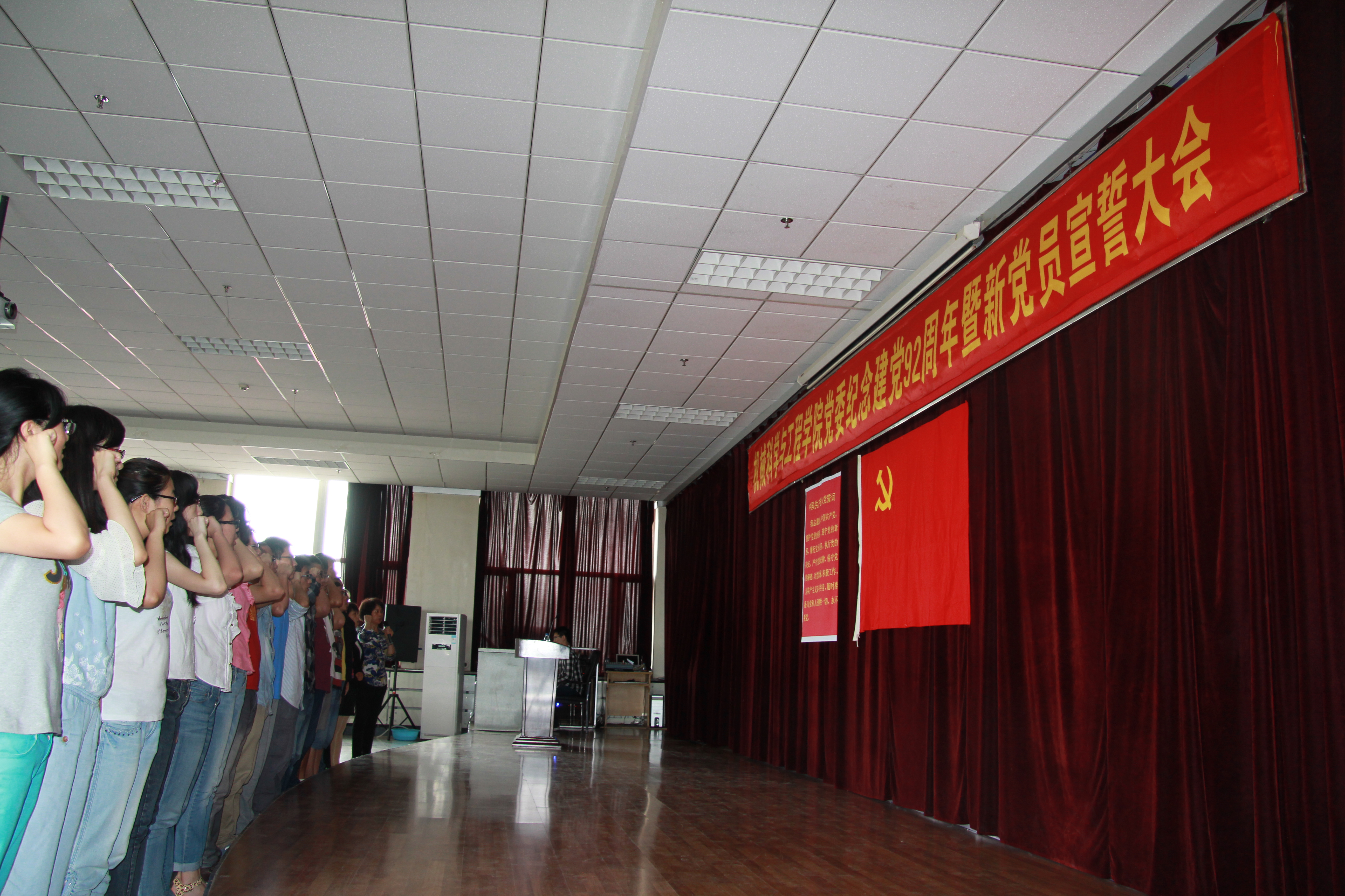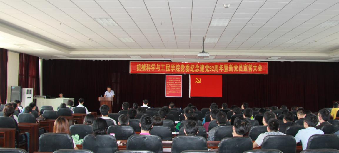 2013年6月21日下午13:30,机械公司党委在机械馆8楼报告厅举行纪念建党92周年暨新党员入党宣誓大会。今年新入党的全体党员和部分积极分子代表参加了本次大会。会议由公司党委副书记兼副经理郑福胜同志主持。
