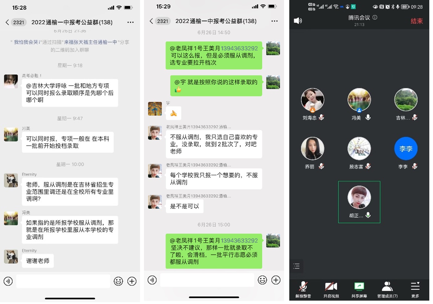 2022年6月25日,机械制造及自动化系教工党支部举办了“通榆一中高考志愿填报咨询会”,会议采用腾讯会议开展,同时利用微信群进行实时答疑,以实际行动为群众做好事、办实事。支部书记呼咏、副书记刘欣,党员张富、冯美、何佳龙、殷志富、刘海忠等为即将报考的学子提供了非常细致、具体的咨询服务,为员工和家长们解答了公司、地域、专业前景、未来就业等方面的疑问和困惑,并根据具体分数和兴趣为考生提供了专业的、切实可行的填报志愿指导。