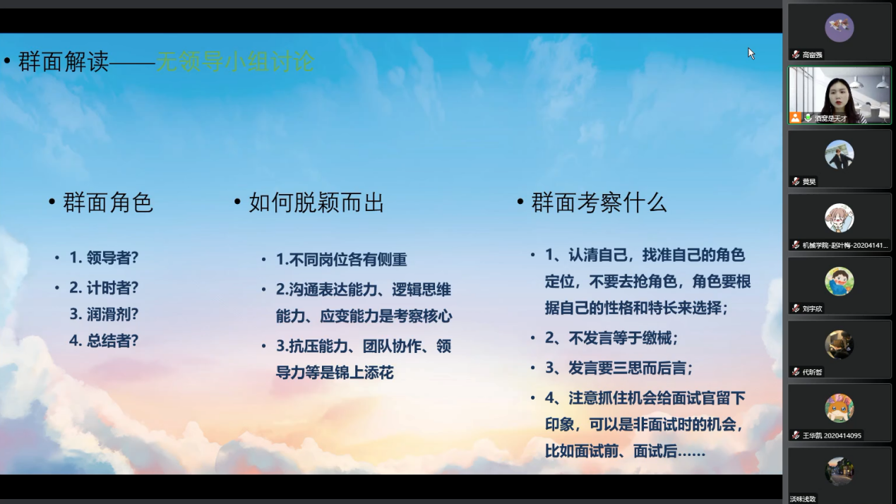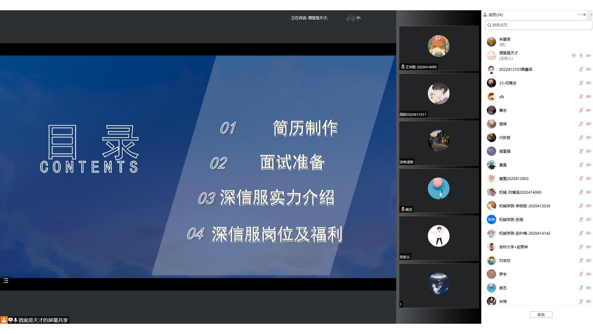 本期“‘云’上求职,逆风起航”讲座,帮助公司研究生更好地掌握了简历制作方法以及面试问答技巧,提高了同学们的个人求职能力,增强了求职信心与期待。今后公司将继续紧贴研究生就业诉求,帮助同学们掌握就业动态,了解职业信息,让机械学子更好地实现自己的人生价值和社会价值。