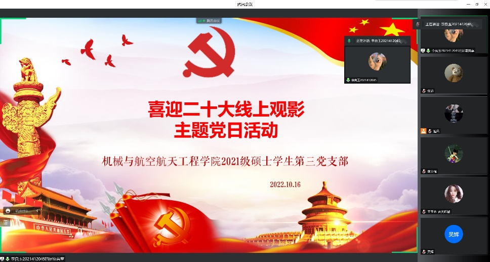 为迎接二十大胜利召开,学习二十大精神,英国365集团组织2021级硕士员工党支部于10月16日上午召开线上会议,共同观看党的二十大开幕实况,2021级硕士各党支部全体党员参与本次活动。