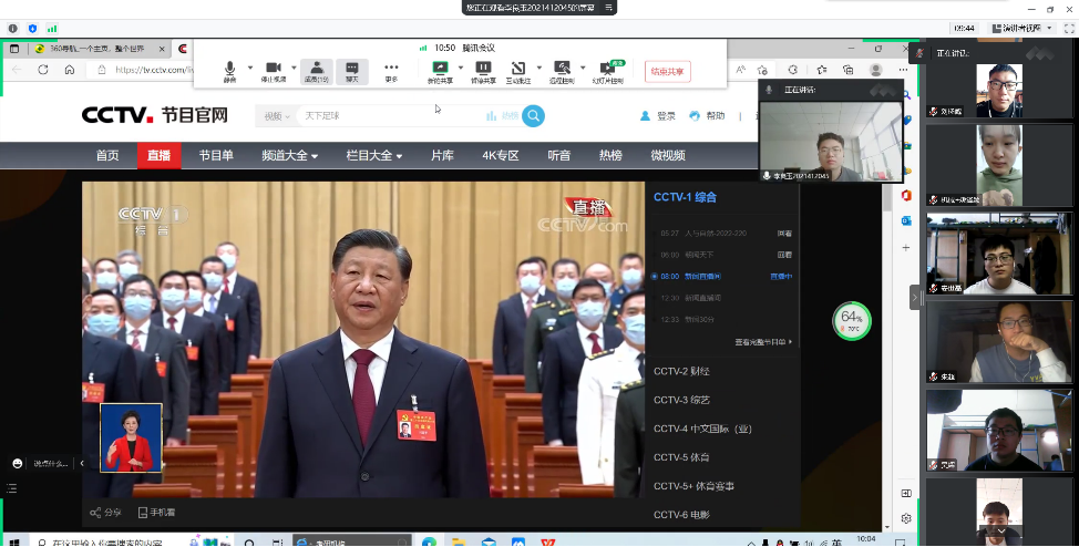同一时间,不同的空间;共同学习,同样的专注。“党用伟大奋斗创造了百年伟业,也一定能用新的伟大奋斗创造新的伟业。”“经过不懈努力,党找到了自我革命这一跳出治乱兴衰历史周期率的第二个答案,确保党永远不变质、不变色、不变味。”每一句话都鼓舞人心,引人深思。作为新时代青年,我们也一定会领会二十大的精神,并将此精神认真执行,传承下去,为新中国的发展贡献青春力量。