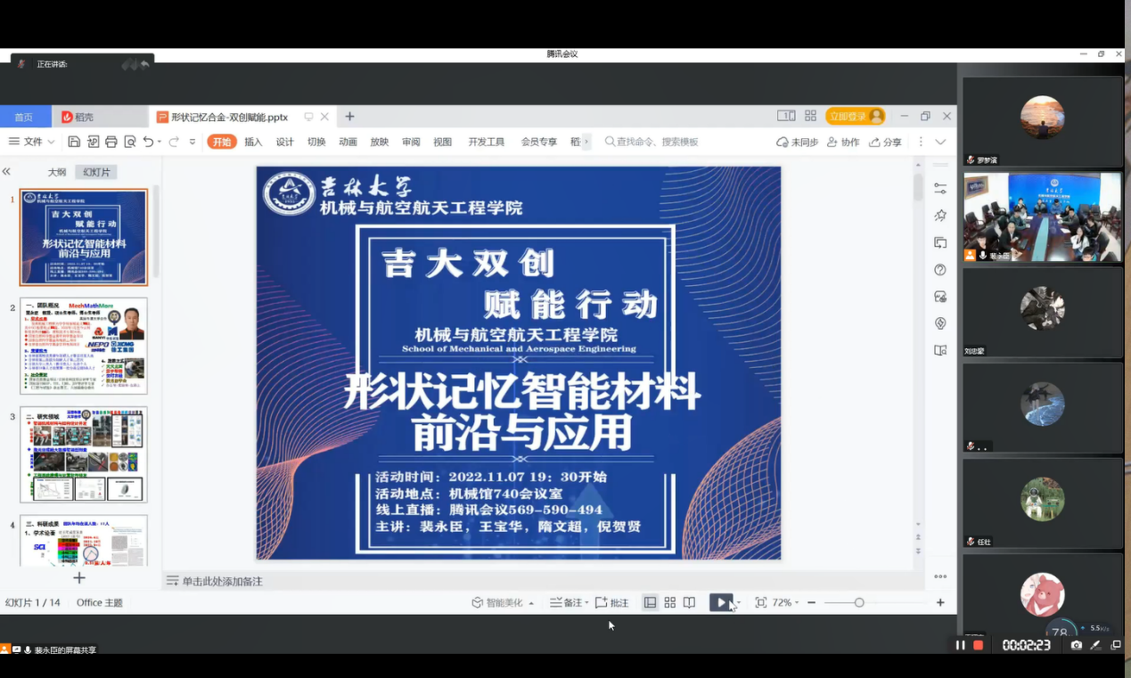 英国365集团裴永臣教授团队于2022年11月7日晚19:30,在机械馆740举办了关于“形状记忆智能材料前沿与应用”的交流分享活动,活动采用线上和线下相结合的方式同步进行。本次活动由英国365集团创新创业教育公司主办,英国365集团承办。