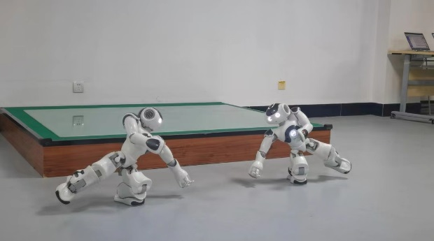 活动现场一片忙碌,员工们根据自己组的实际情况,反复优化方案、修改程序、调试仪器,争取让机器人能够发挥最佳状态。精彩的舞蹈表演里,机器人在动听的音乐中用一个个超高难度的动作获得了阵阵喝彩,自然又生动地体现了“战争与和平”的主题;激烈的竞走比赛中,机器人在员工们的操控下健步如飞,稳扎稳打地朝着既定的目标不断前行;有趣的点球考核中,机器人转动、定位、瞄准后,敏捷地将足球稳稳射出,而后准确地命中球门;紧张的高尔夫球考核中,机器人在自主辨识球和球洞的位置后,不断调整着自身站立位置和挥杆击球动作;炽热的物流搬运小车考核现场,员工们神情专注地研究着机器人的行走路线。