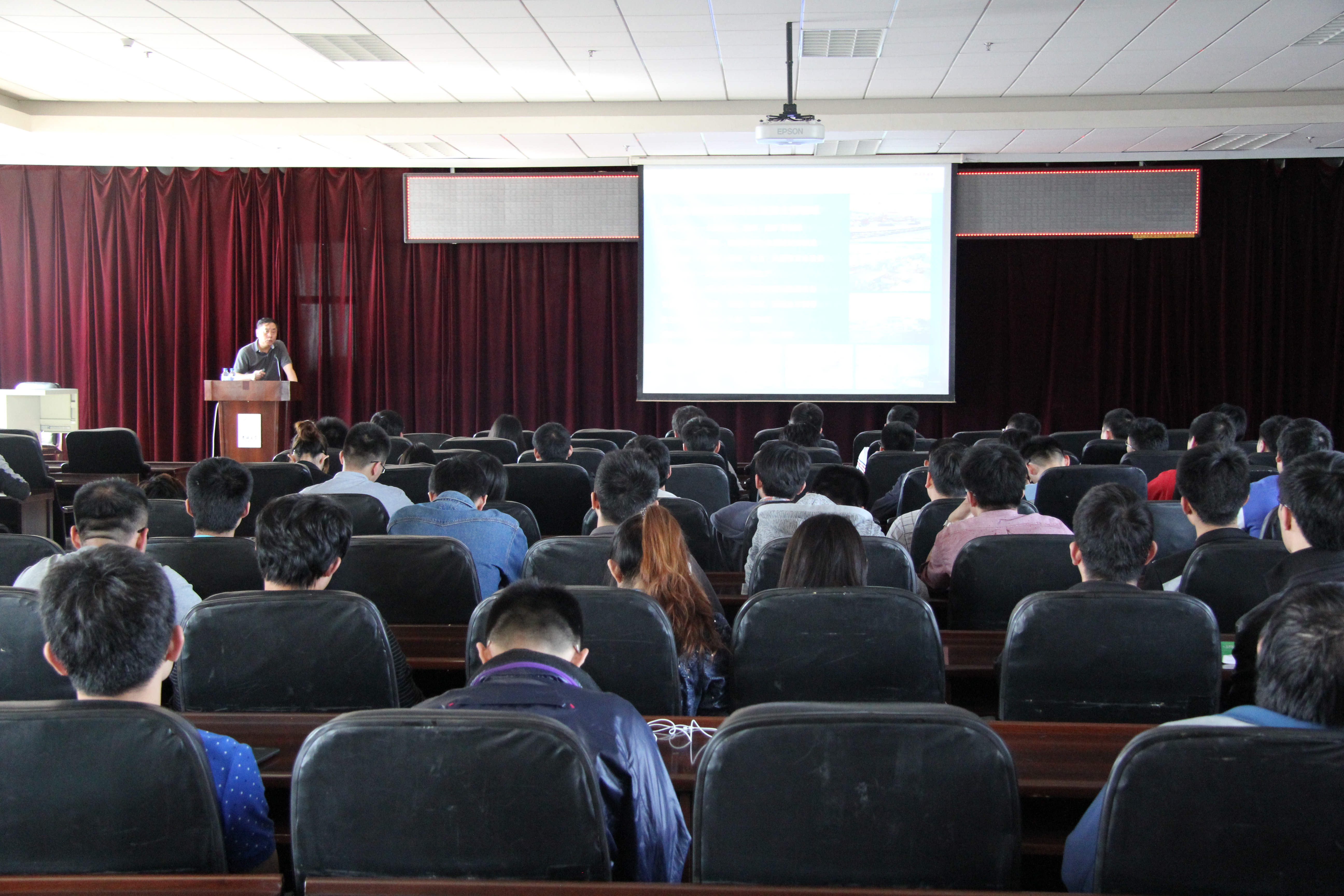 赵凯军教授首先向在座师生介绍了重大装备在国家各领域的重要地位、我国主要工业领域的发展水平和我国制造业发展现状;然后又针对全断面掘进机的主要功能、主要构成、盾构机的起源﹑发展及现状、目前北方重工全断面掘进机发展水平和北方重工开发研制的世界首套年产2000吨的高性能镁合金薄板轧制成套设备进行了详细说明;最后赵凯军教授还向在座的师生们阐述了未来的展望、面临的机遇和成为优秀重大装备设计师需要的基本素质。
