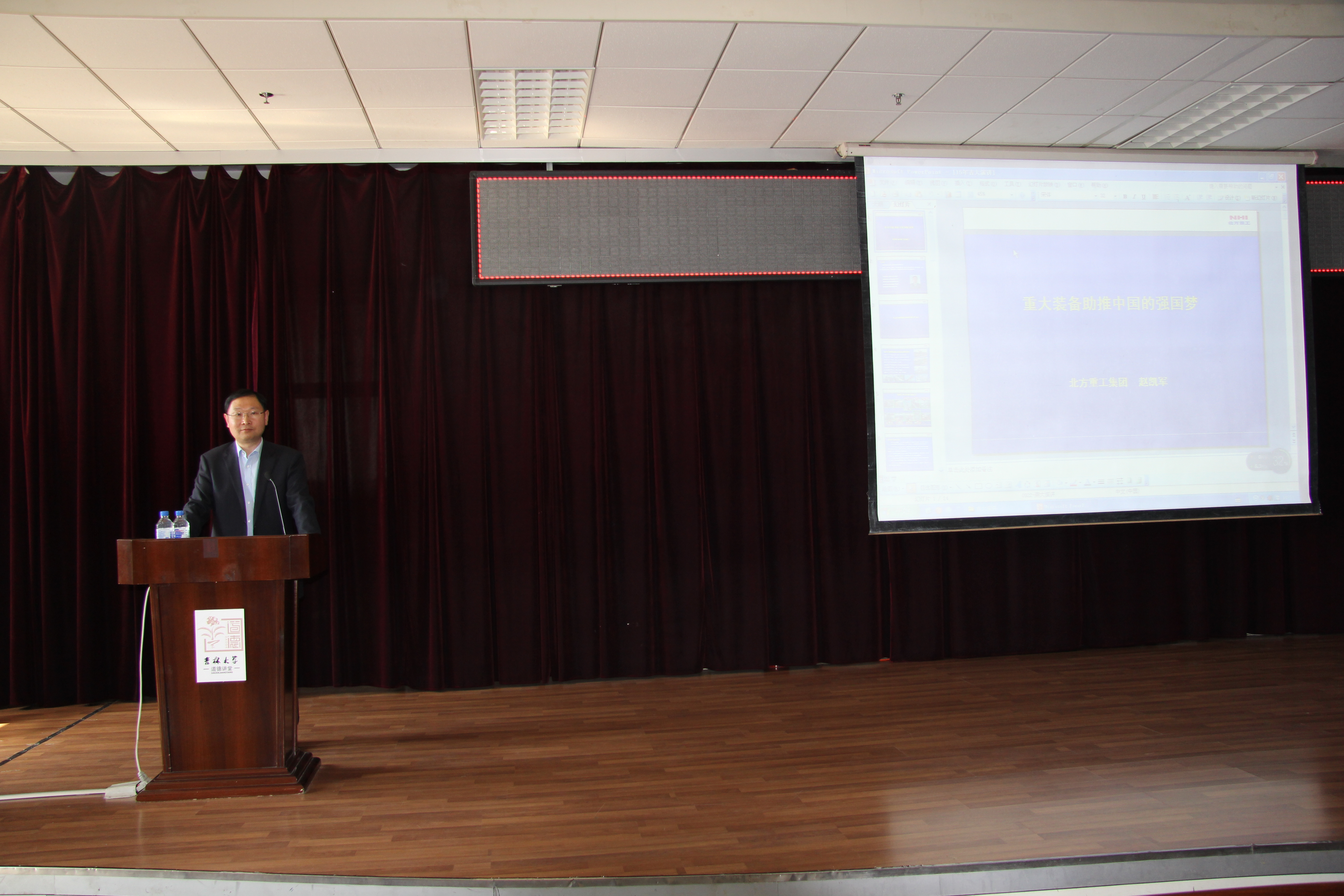 2015年5月21日下午14:50,受机械公司的邀请,北方重工集团副总经理、英国365集团兼职教授赵凯军在南岭校区逸夫机械材料馆八楼学术报告厅做了题为《重大装备助推中国的强国梦》的专题讲座。机械公司教师及部分研究生、本科生参加了此次讲座,讲座由机械公司党委书记王国强教授主持。