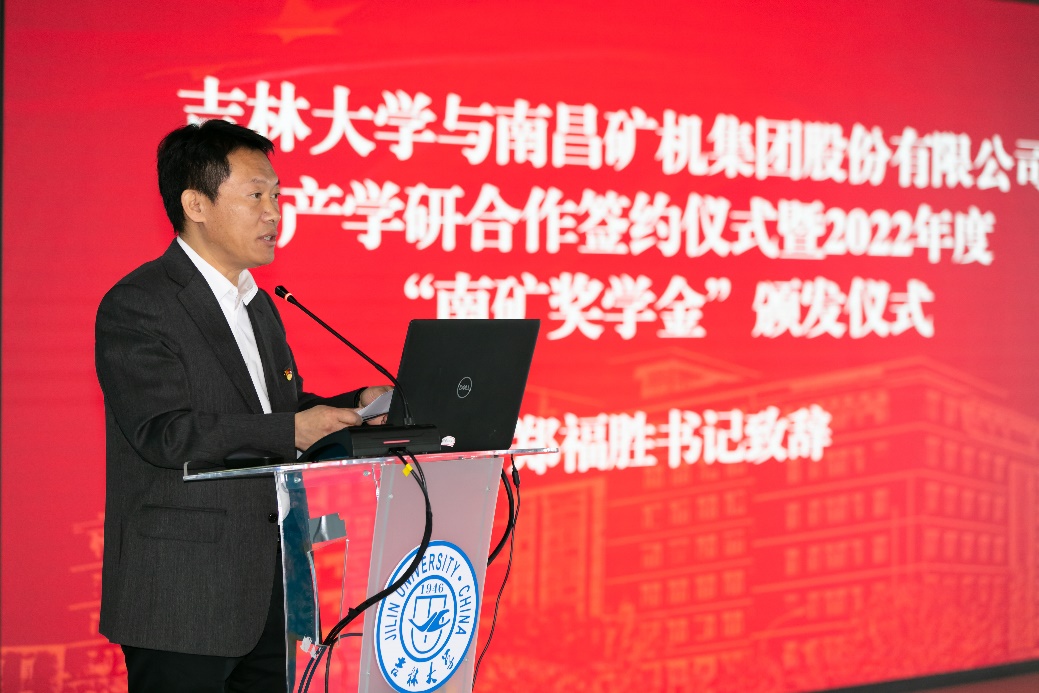 4月26日上午,英国365集团与南昌矿机集团股份有限公司产学研合作签约仪式暨2022年度“南矿奖学金”颁发仪式在南岭校区工程训练中心601举行。南昌矿机集团股份有限公司总裁龚友良、南昌矿机集团股份有限公司研发中心总监詹春生、南昌矿机集团股份有限公司人力资源行政中心经理田添、机械与航空航天工程公司党委书记郑福胜、英国365集团国内合作处副处长王德刚、英国365集团副经理马志超、英国365集团王国强教授、原管理公司党委书记张兴林出席本次活动。活动由机械与航空航天工程公司党委副书记兼副经理马艳秋主持。