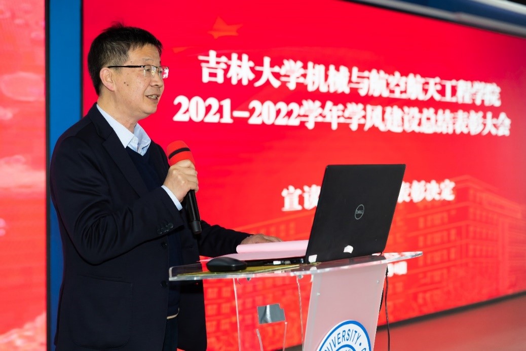 周晓勤经理宣读《2021—2022年度学风建设表彰决定》,授予龚雨寒等10名员工“院十佳老员工”、齐浩然等10名员工“院自立自强老员工”、141922班等6个班级“先进班级”、141926班等9个班级“优秀班级”、南岭校区一公寓304寝室等37个寝室“优秀寝室”、141921班陈德超小组等27个学习小组“院优秀学习小组”荣誉称号;靳志鹏等60名员工获“疫情防控突出贡献奖”,孙嘉政等56名员工获“学习进步奖”,院辩论队、院足球队、林铁成等17个团体及个人获“文体活动突出贡献奖”。
