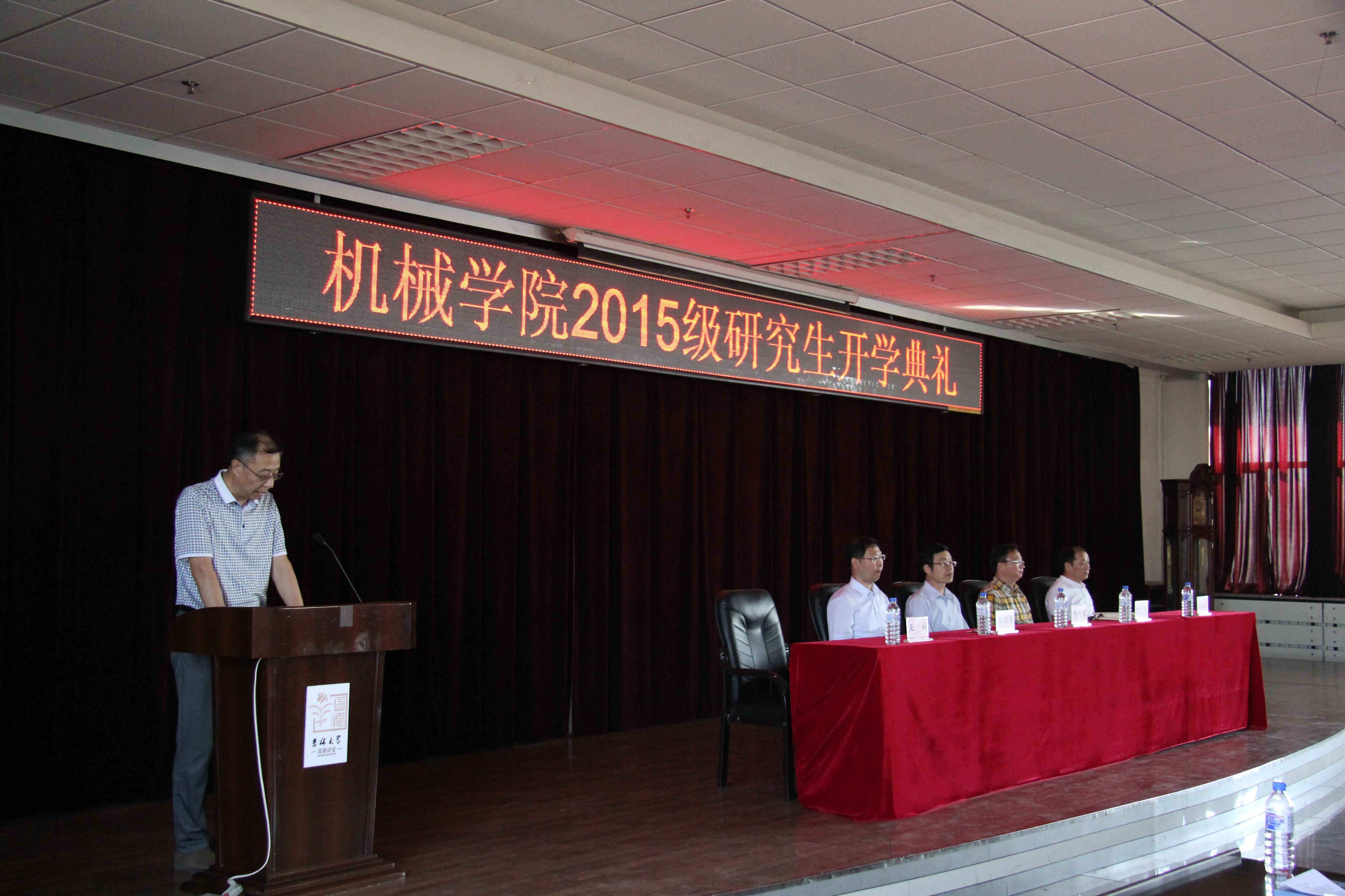 金秋九月,丹桂飘香,9月8日上午,机械公司在机械材料馆8楼隆重举行了2015级研究生开学典礼。经理杨兆军教授,党委书记王国强教授,副经理赵宏伟教授等出席了此次典礼,由公司党委副书记王柏教授主持。