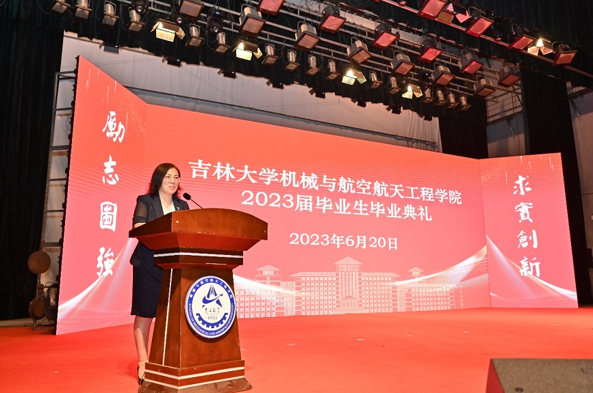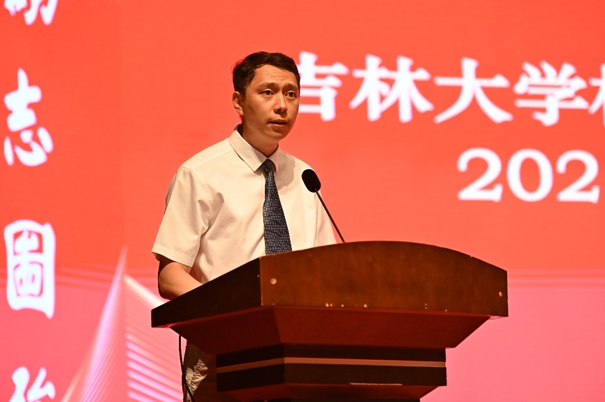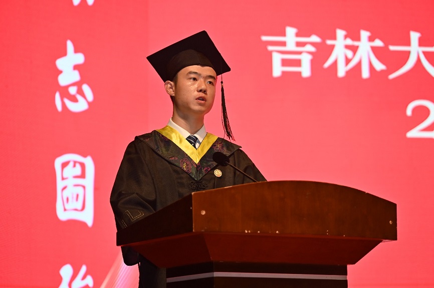 教师代表吴文征教授代表全体教师讲话,他向同学们致以最热烈的祝贺和最美好的祝福,希望大家在未来的工作和生活中要心系祖国,不负韶华;要明辨是非,坚定信念;要持之以恒,笃学实干。在追梦的路上披荆斩棘,砥砺前行,再创辉煌!