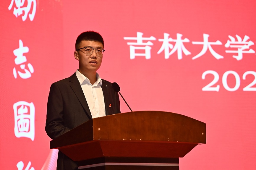 往届毕业生代表、一汽解放商用车开发公司党群人事部范成君员工分享了入职后的体会,希望学弟学妹们离开校园后尽快转换角色、持续学习并永葆家国情怀,秉持机械人特有的底色和品质,共创吉人天下。