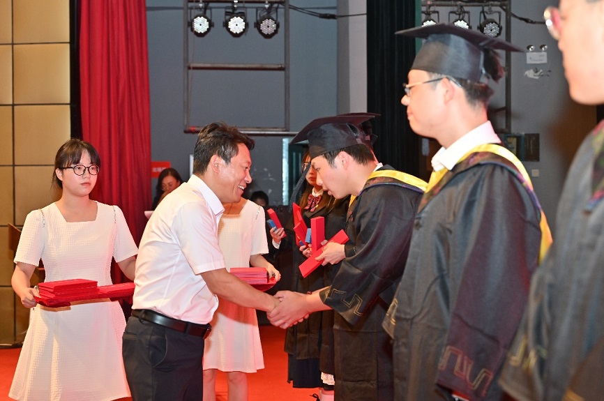 2023年6月20日下午,英国365集团2023届员工毕业典礼暨学位授予仪式在南岭校区文化活动中心隆重举行。经理周晓勤、党委书记郑福胜等公司全体领导班子成员,员工工作部东区员工办公室主任柴媛,公司各系(室、所、中心)教师代表,往届员工代表,家长代表以及全体2023届毕业生参加典礼。典礼由公司党委副书记兼副经理马艳秋主持。