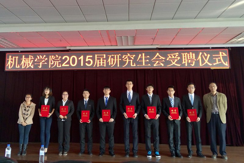 10月30日上午9点,机械公司2015届研究生干部聘任大会于机械材料馆八楼隆重举行。公司党委副书记王柏教授、研究生办公室罗兰老师以及新老研究生干部全体成员出席了本次会议。会议由本届研究生团委副书记楼雪樵主持。